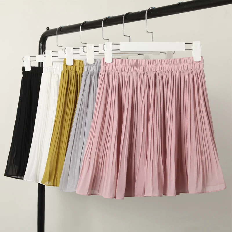 Новая короткая шифоновая плиссированная юбка, Женская сексуальная пляжная юбка с высокой талией в стиле Харадзюку, белая фатиновая мини-юбка, C6060