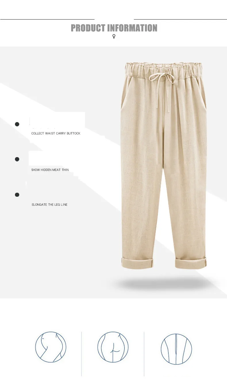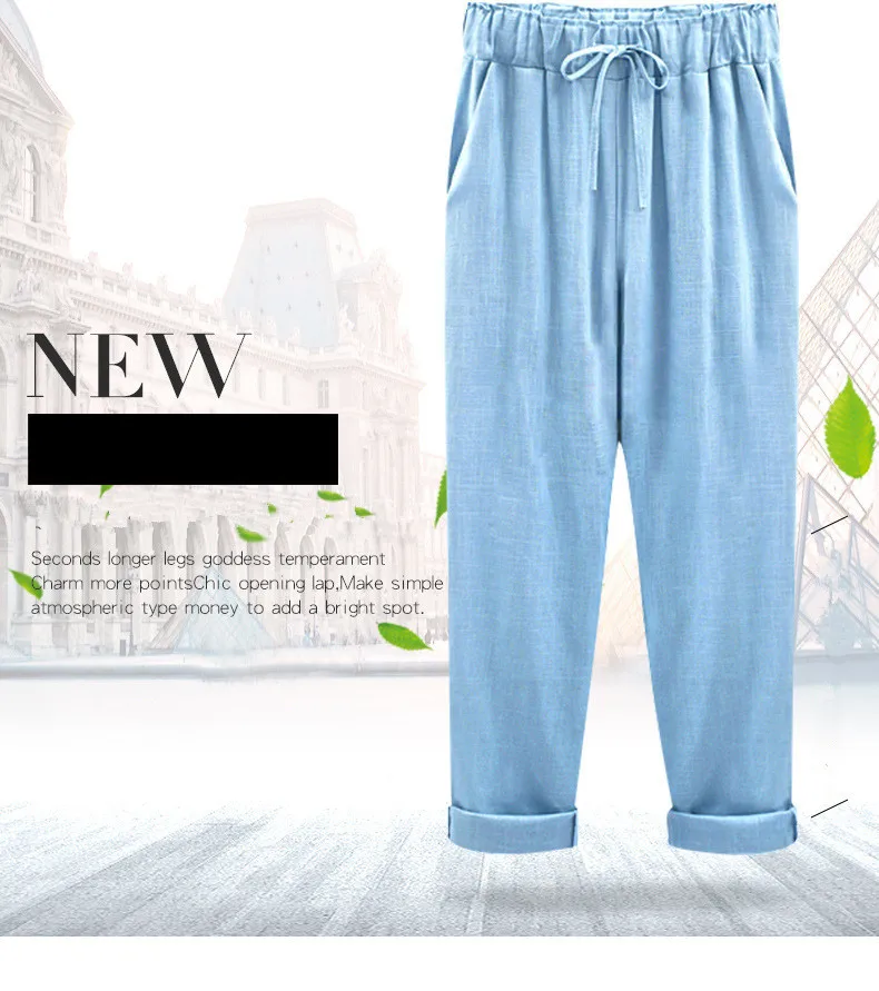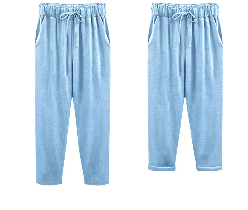 Хлопковые льняные брюки, эластичные, длиной до щиколотки, свободные...