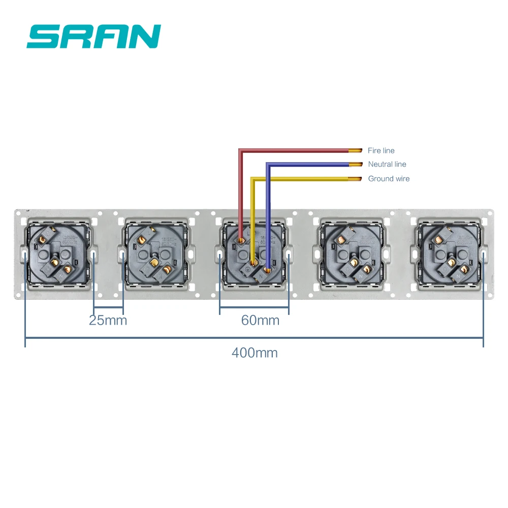 Настенная розетка SRAN 430 мм * 86 мм с европейской вилкой, домашние многорамные черныебелыеЗолотые огнестойкие панельные розетки из поликарбоната