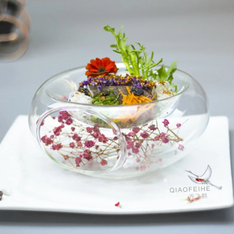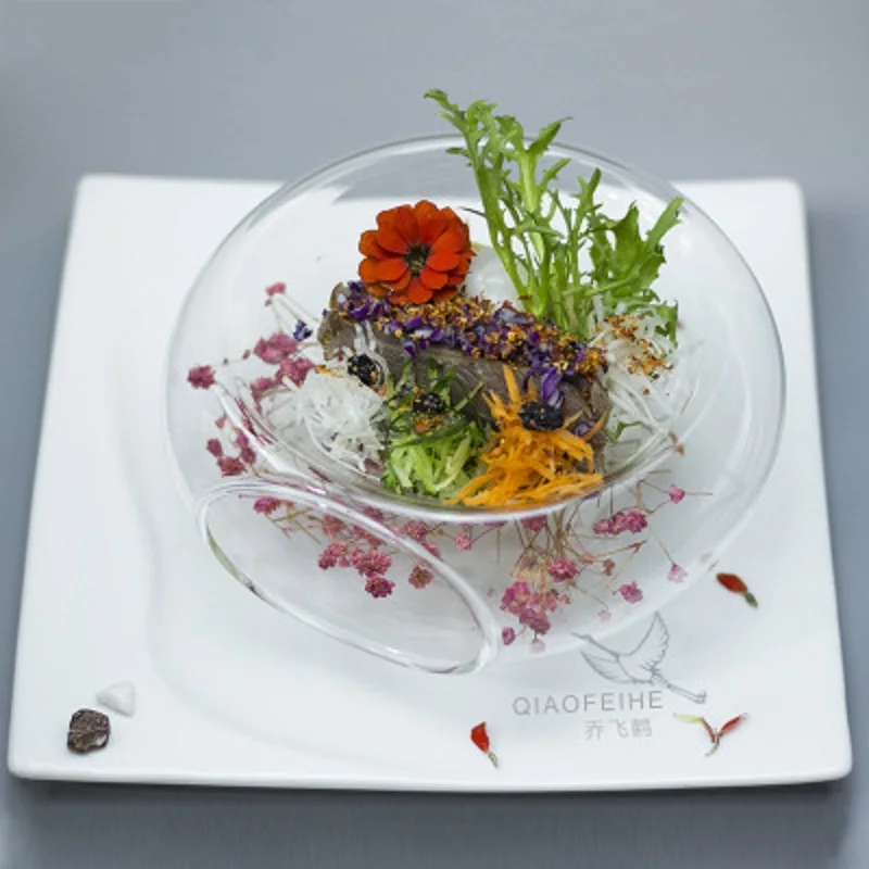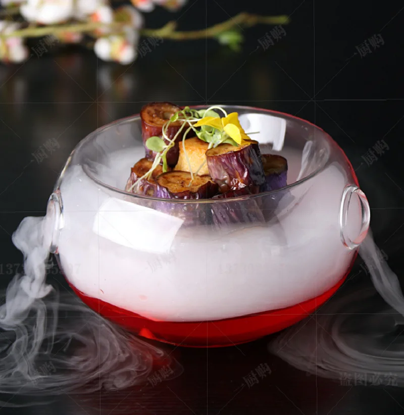 Салатные чаши ручной работы, специальное предложение, Стеклянная чаша для сухого льда, художественная концепция, креативная посуда с молекулярными деликатесами, кухонная посуда с вырезами