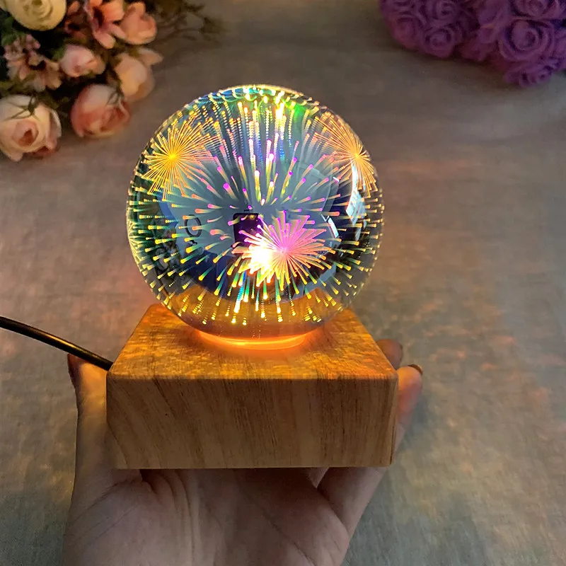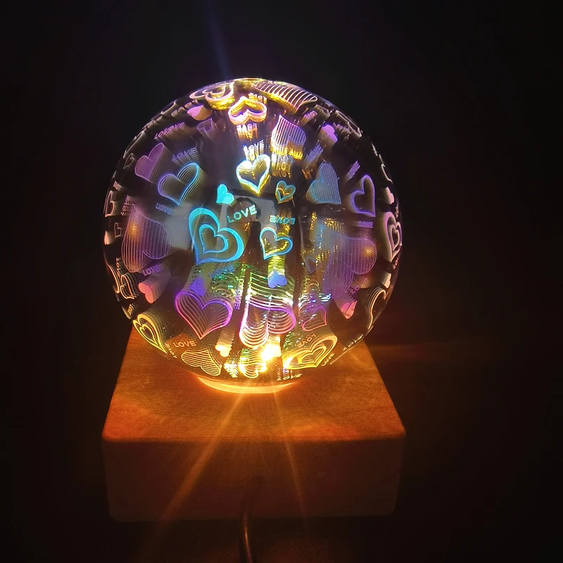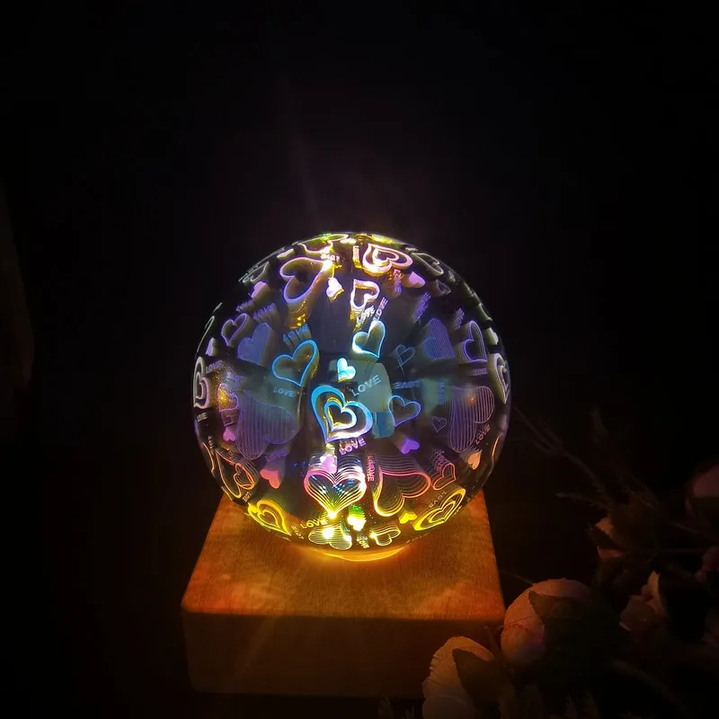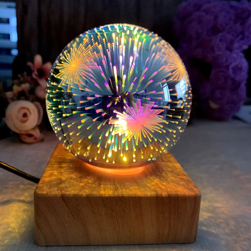 Светодиодный ночсветильник, настольная лампа, 3D романтические настольные лампы, настроение, светильник, стеклянный купол, деревянное основание, идеально подходит для Рождественского украшения, освещение