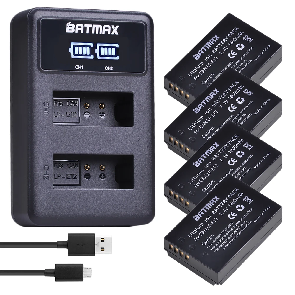 Batmax 1800 мАч LP-E12 LPE12 LP E12 батарея + светодиодный двойной USB зарядное устройство для Canon EOS 100D Kiss X7 Rebel SL1 EOS M10 DSLR камер