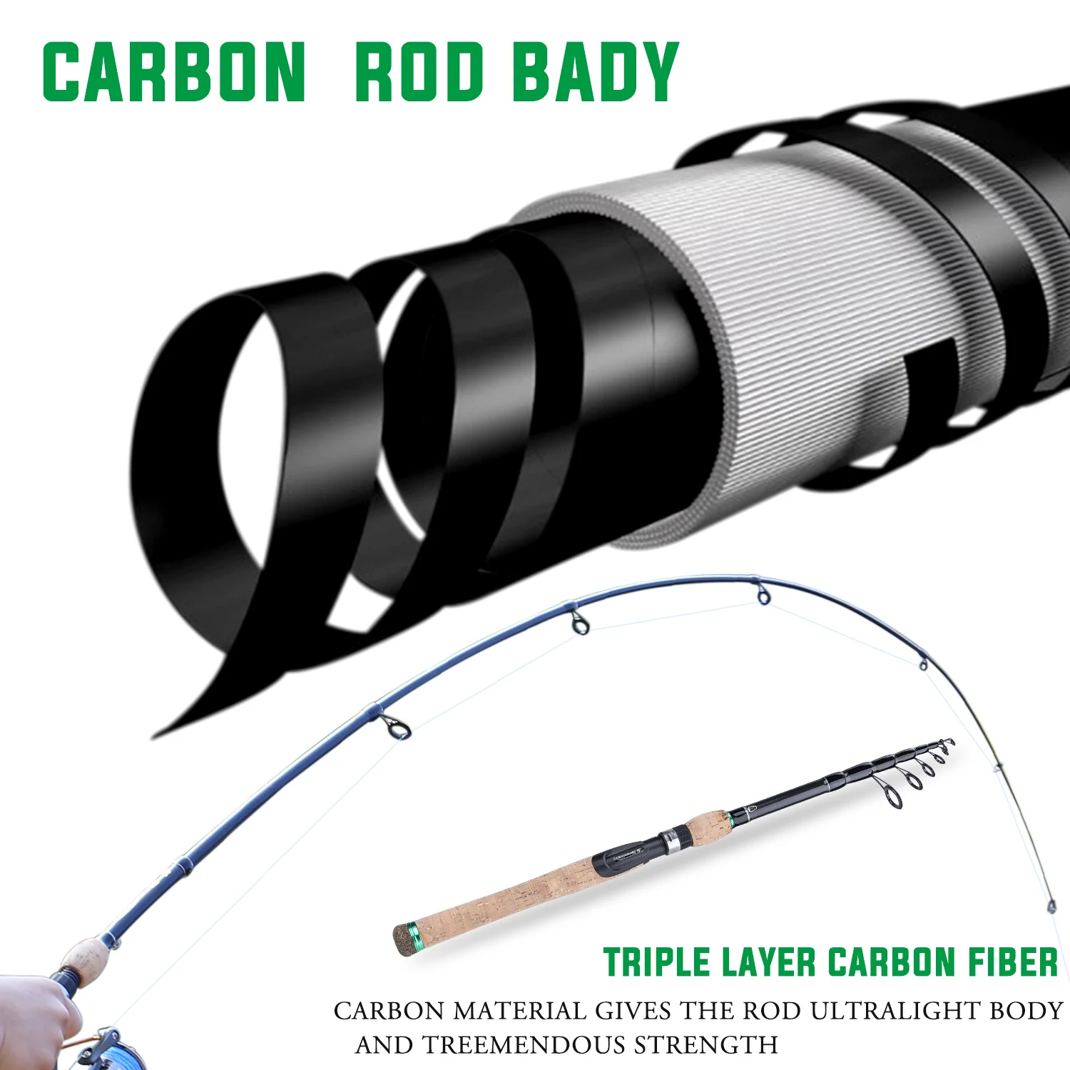 Переносная телескопическая удочка Sougayilang 1,8 м-2,7 м, пробковая ручка, спиннинг, удочка из углеродного волокна, дорожная удочка, снасти