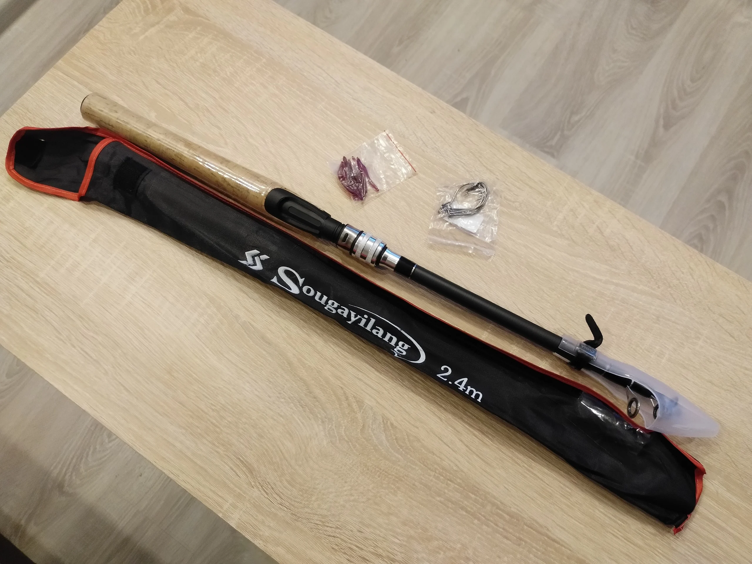 Продавец положил маленький презент Спасибо!!!!но длина спининга не 240см а 230 за это только 3