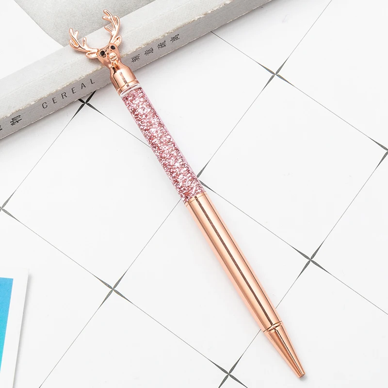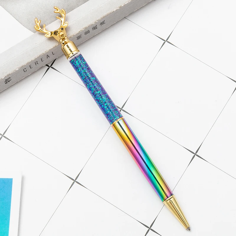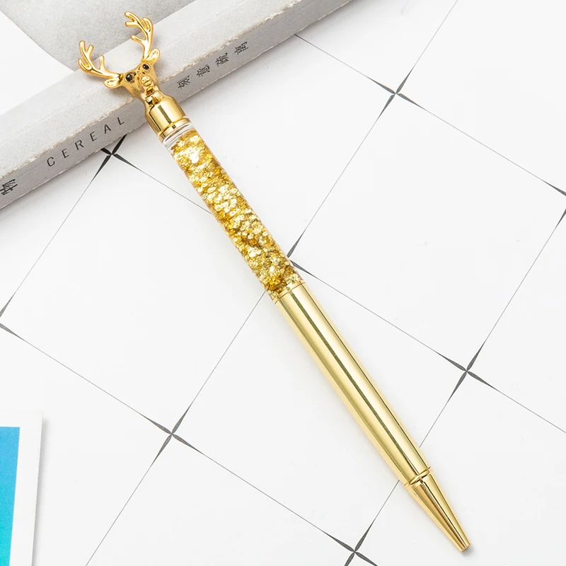 Металлическая шариковая ручка в форме лося, лазерная Золотая Ручка для письма, креативный Рождественский подарок для девочек и студентов, кавайные канцелярские принадлежности