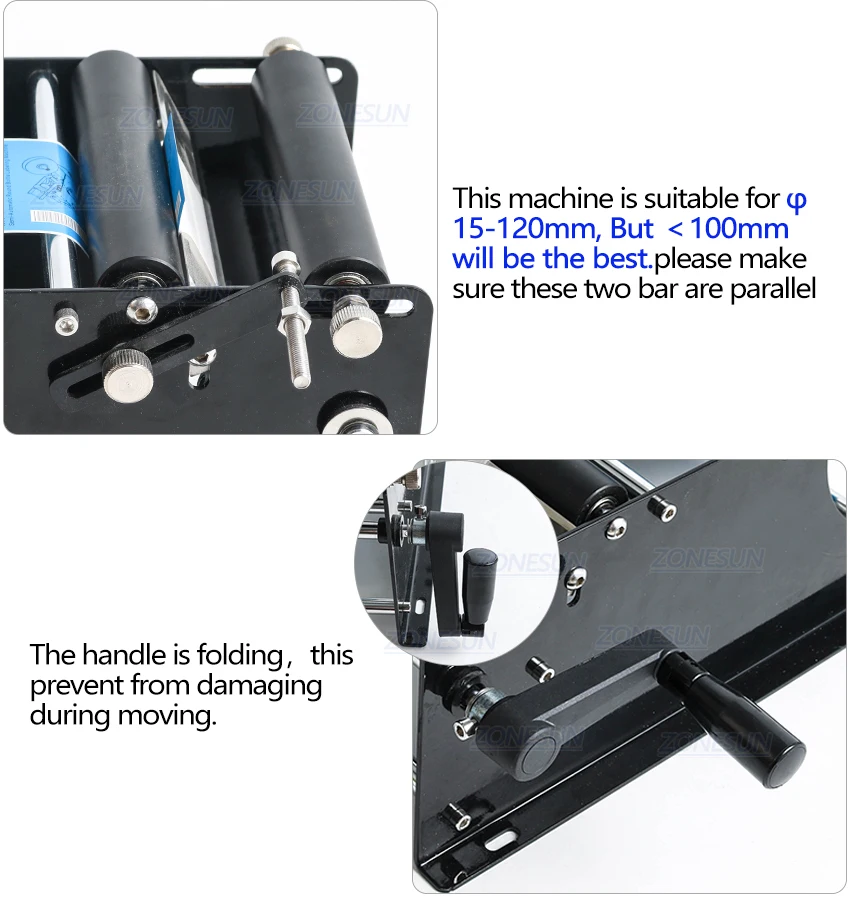 2. Подходит для круглых бутылок: Отрегулируйте расстояние между двумя рулонами, чтобы соответствовать бутылке