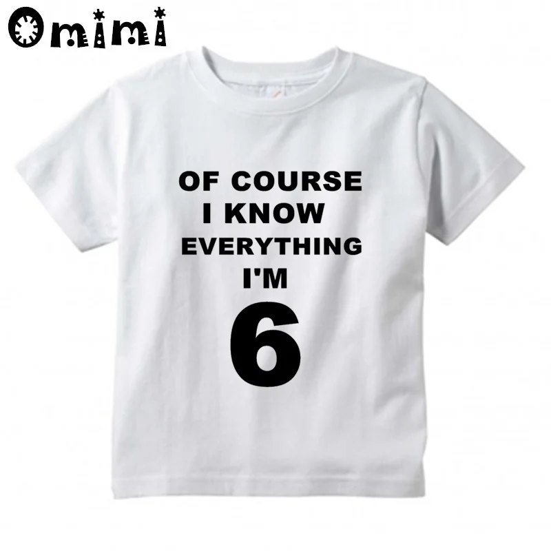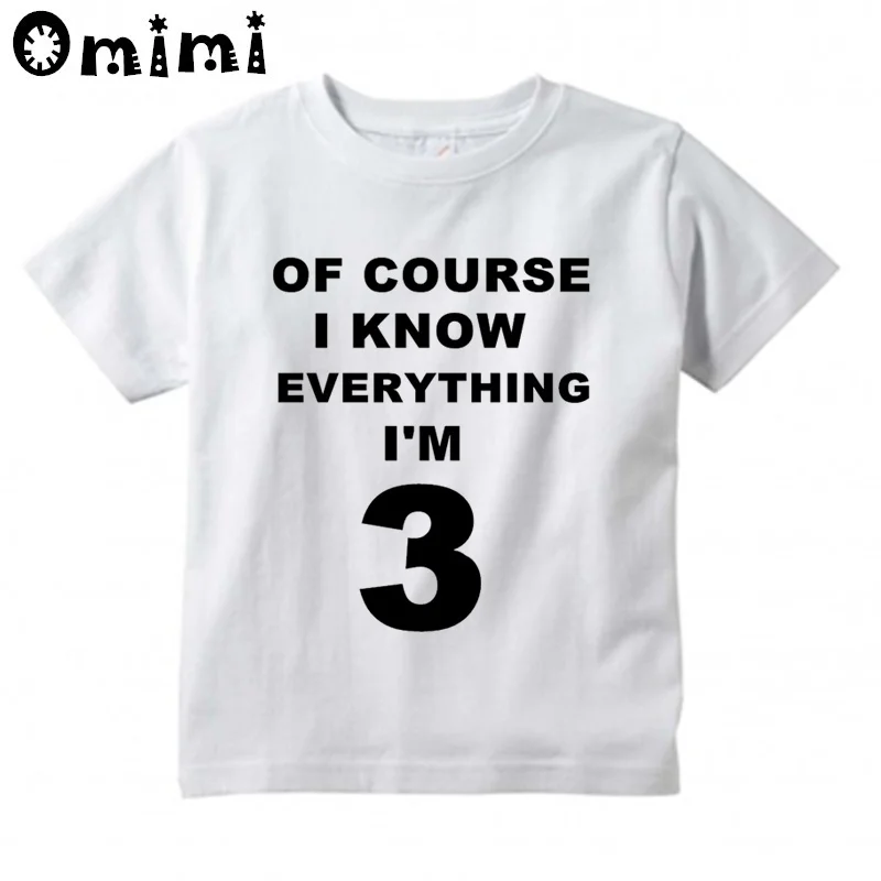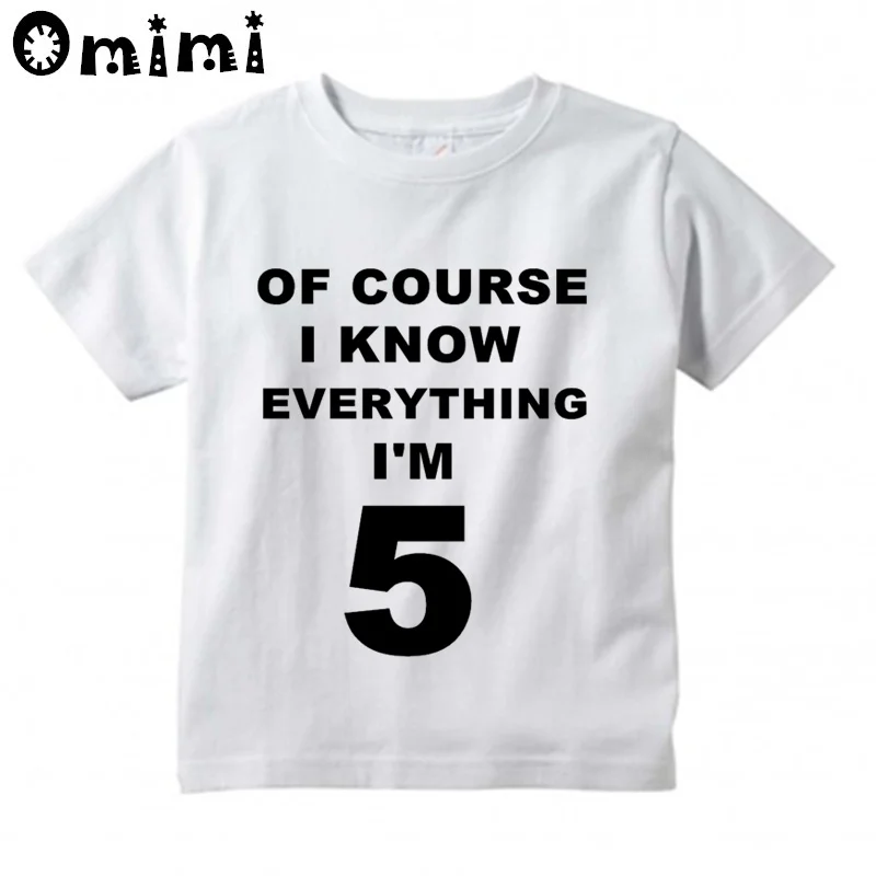 Конечно, I Know Everything I'm 5 Kids/вечерние футболки на день рождения для мальчиков и девочек 1-9 лет модные повседневные футболки для малышей Детские Забавные топы