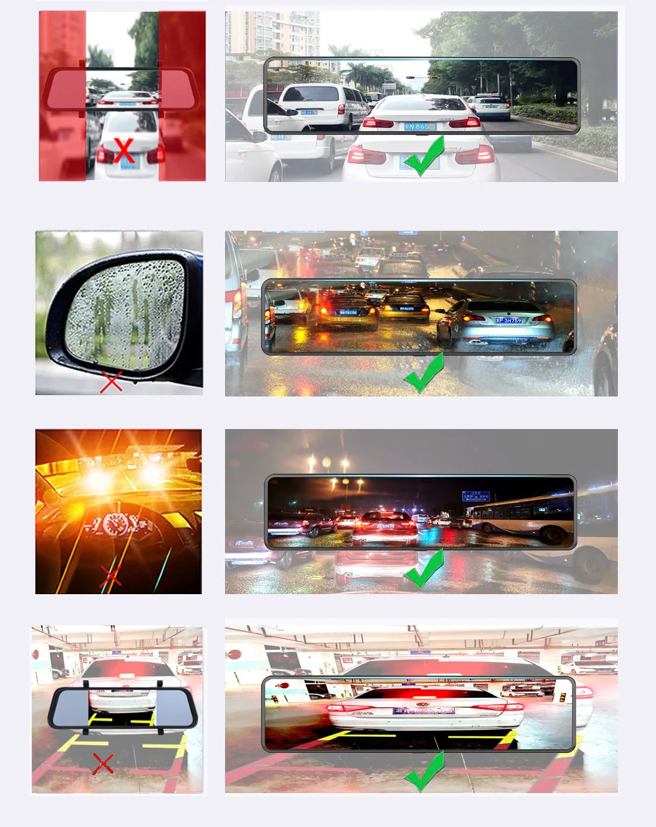 Традиционные зеркала заднего вида обеспечивают только ограниченное поле заднего вида, большую часть времени нам нужно повернуть голову назад, чтобы увидеть более легкое Освещение во время парковки. Потоковая мультимедийная видеокамера позволяет избежать не только препятствий на подголовниках или задних стойках, но и дает примерно в 3 раза больше поля обзора, чем стандартное зеркало заднего вида. Более того, видимость потрясающая даже ночью и в дождливые дни.