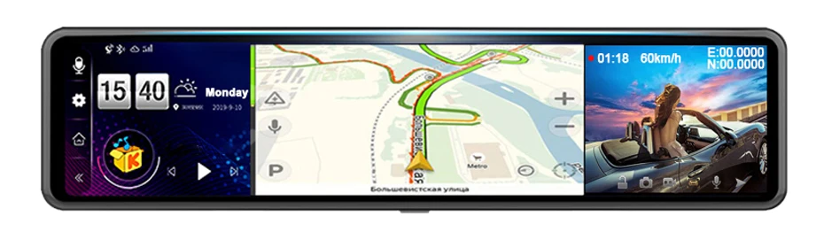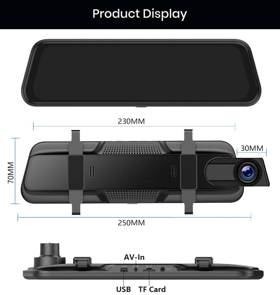 1:1 конструкция с разделенным экраном для переключения записи спереди и сзади, большой экран, четкая и легкая проверка заднего вида. Сенсорный экран для переключения обычного экрана, полноэкранного, разделенного экрана и режима вождения.