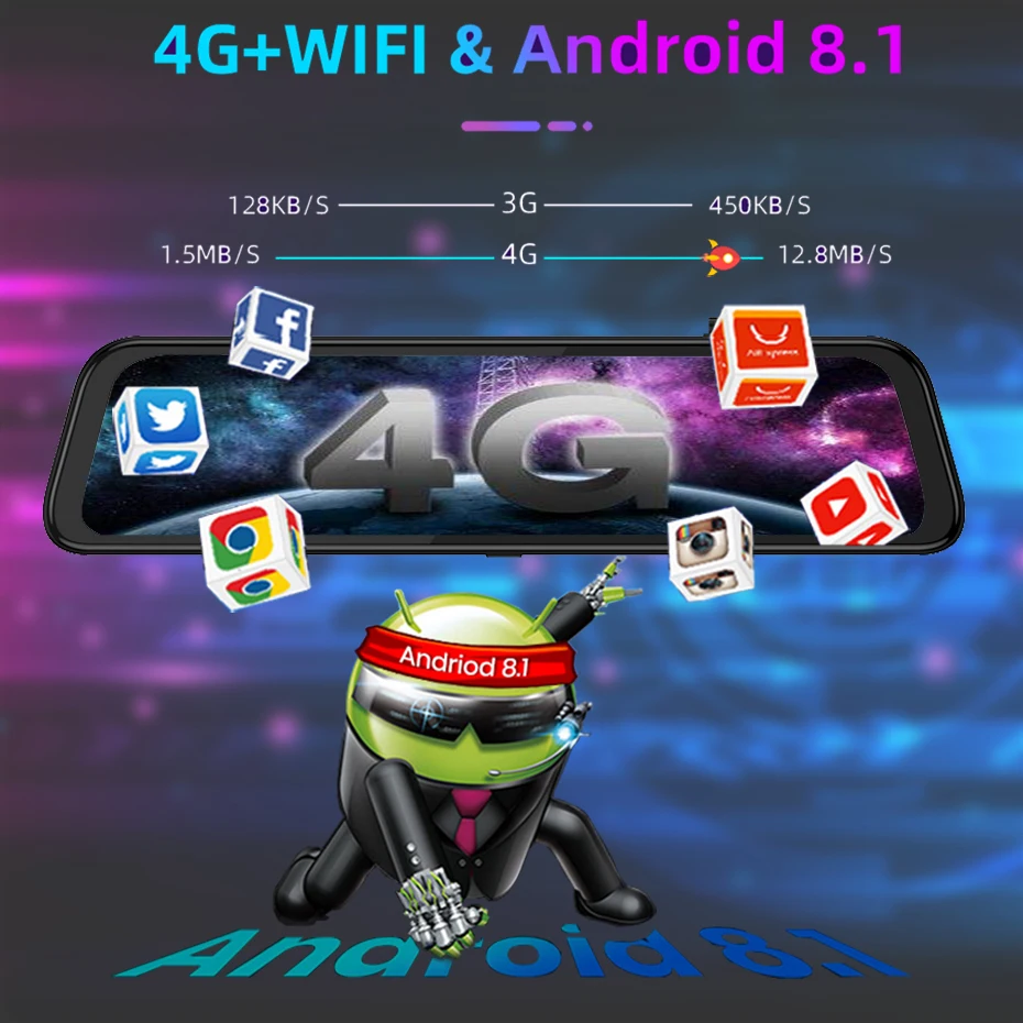 Видеорегистратор-зеркало заднего вида, 12 дюймов, 4G, Android 8,1, ...