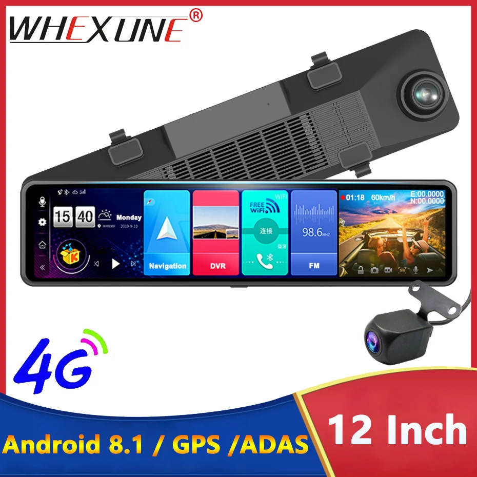 Видеорегистратор-зеркало заднего вида, 12 дюймов, Android 8,1, 2 Гб + 32 ГБ, ADAS, Автомобильный видеорегистратор с камерой 4G, Wi-Fi, GPS, Bluetooth, FHD, 1080P, видеорегистратор Videcam