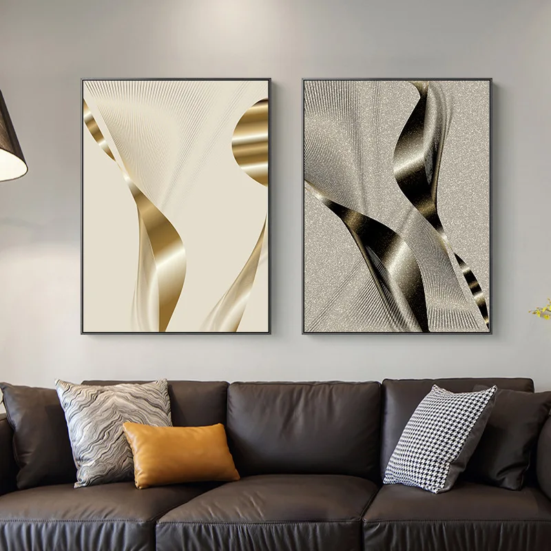 Скандинавский абстрактный золотой настенный холст, плакаты с принто...