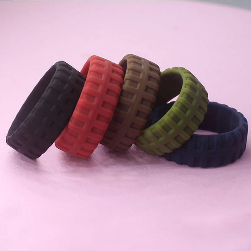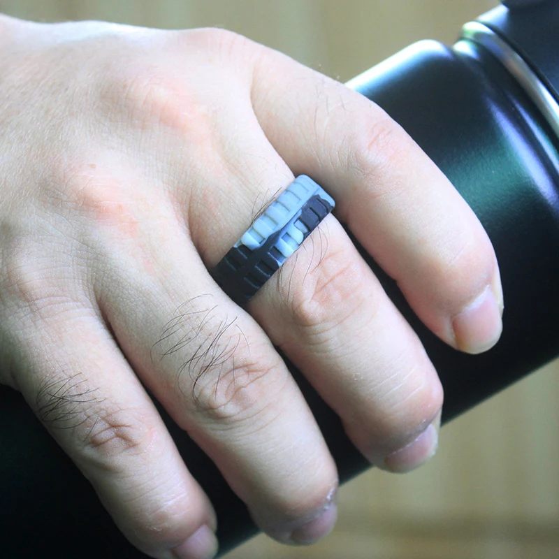 Гибкие силиконовые кольца с узором в виде шин для мужчин, камуфляжное синее Спортивное резиновое Силиконовое кольцо, пищевой класс FDA, подарок на свадьбу