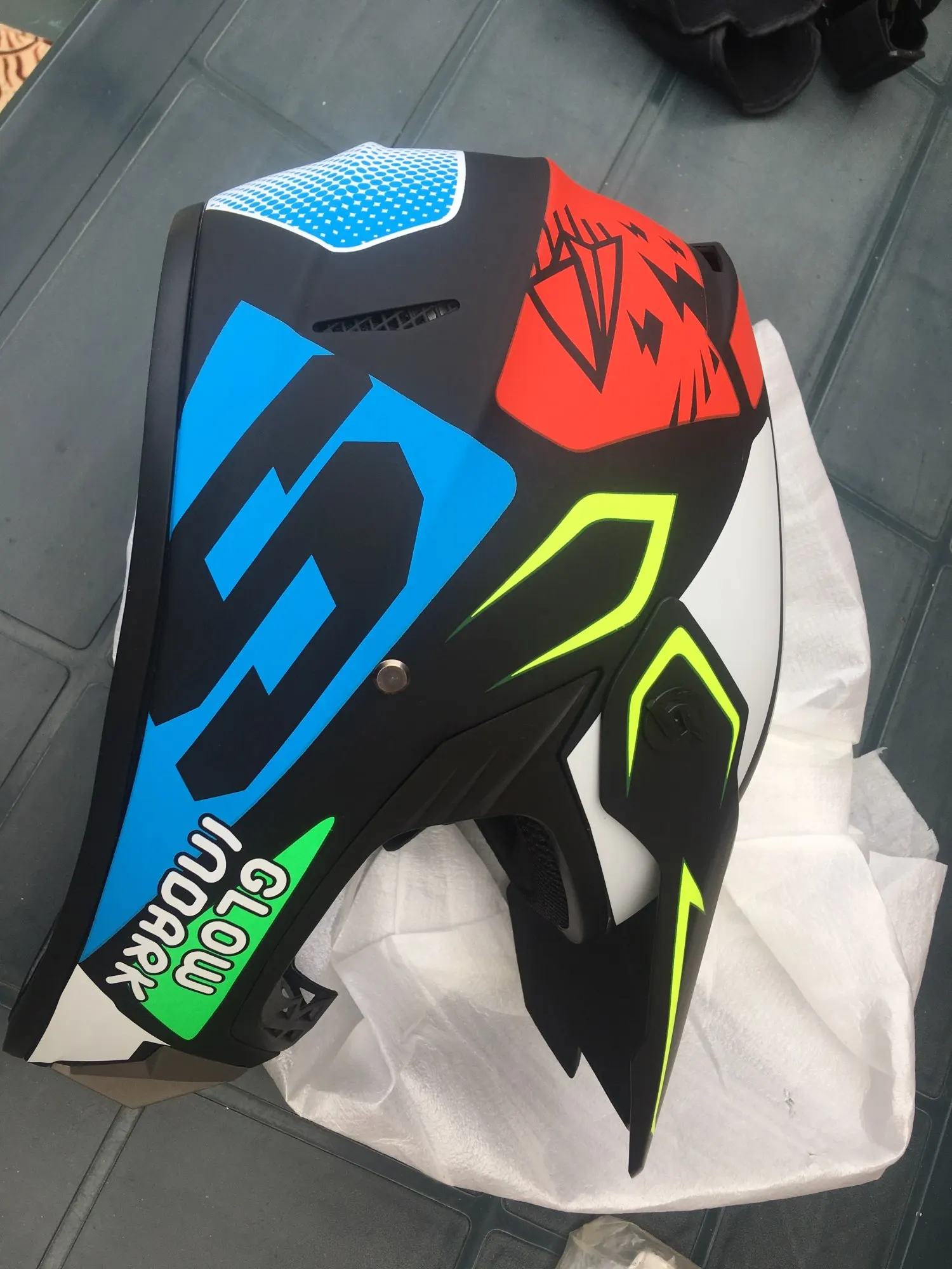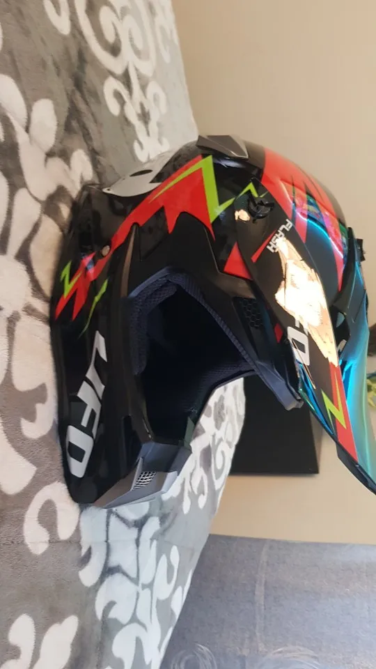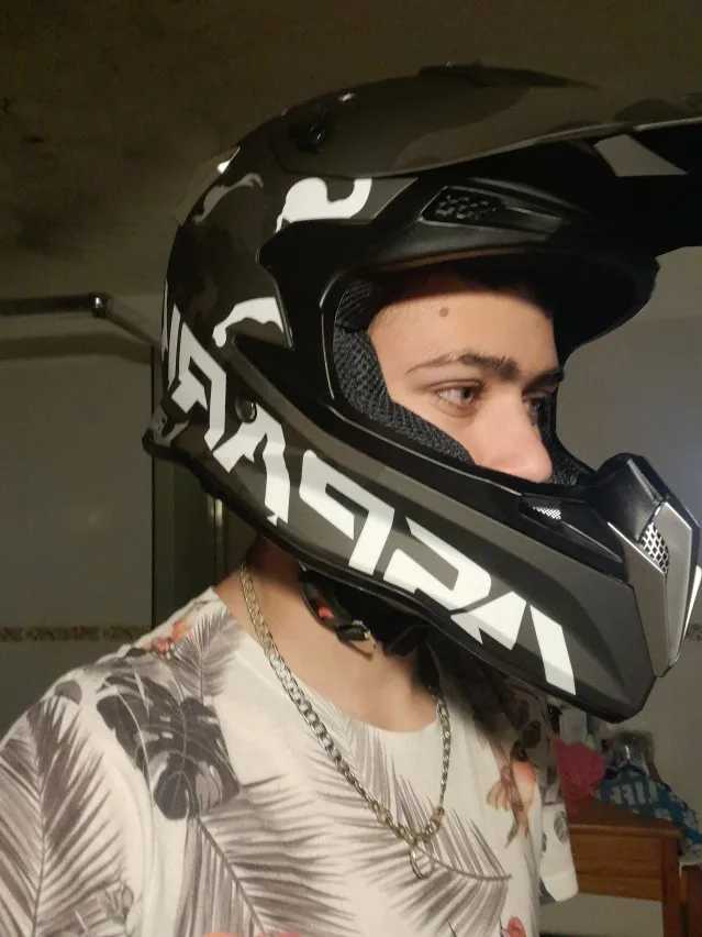 Я приезжаю сегодня, изображение показывает то же самое, что и Приезжаю, но качество очень низкое, замок безопасности пластиковый, эти затворы всегда металлические, поэтому у него не так много безопасности, кроме того, стекло имеет 3 пластиковых винта, а один из них сломан Как только я поставил его, я думаю, что это шлем для велосипеда, а не для мотокросса, и это также ребенок, поэтому он не работает для меня, я очень разочарован, это не шлем для езды по дороге в случае несчастного случая защищает, так как элемент закрытия кости пряжка Пластик для пластика