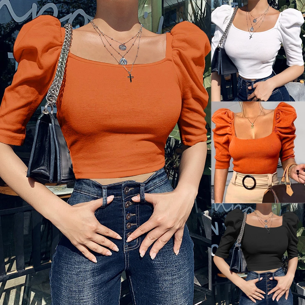 Женская футболка с оборками и открытыми плечами, однотонный Повседневный короткий топ с оборками на лето