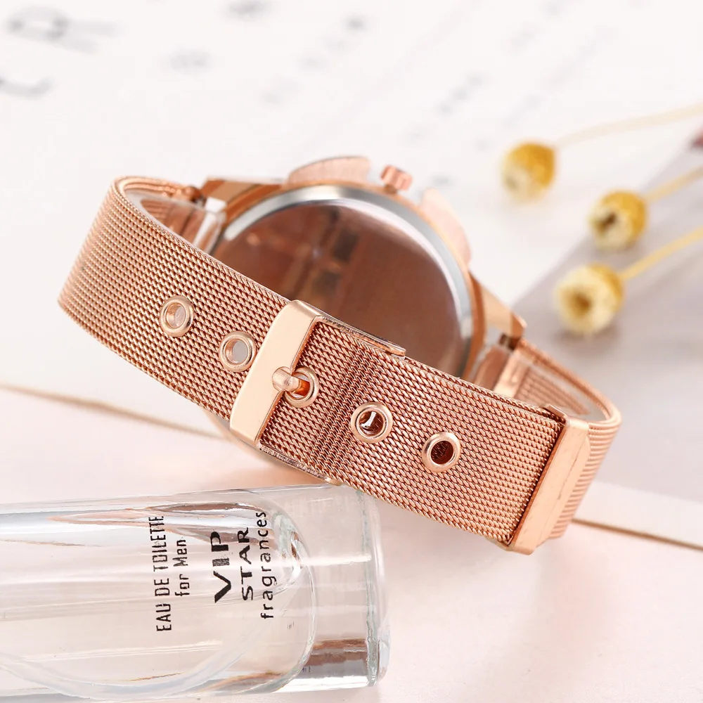 Модные женские розовые наручные часы с золотыми цветами и стразами,...