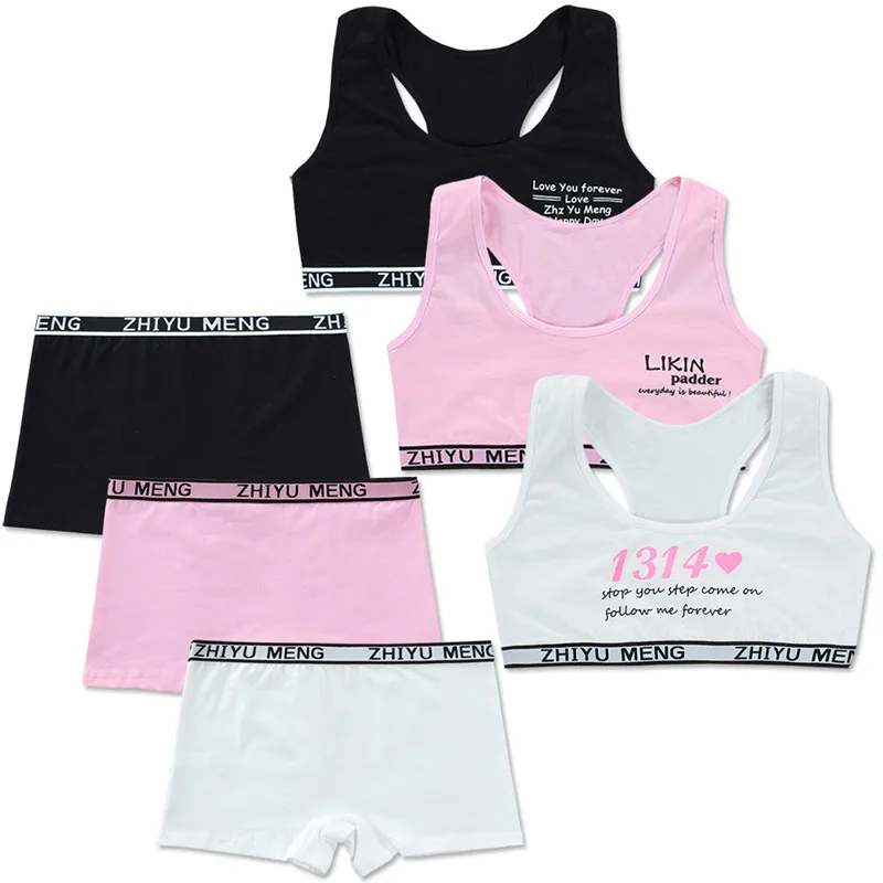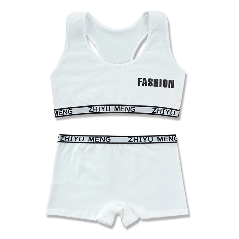 Детские бюстгальтеры для девочек-подростков, спортивный бюстгальтер свободного размера, однотонный мягкий набор трусов спортивный бюстгальтер для девочек 8-14 лет