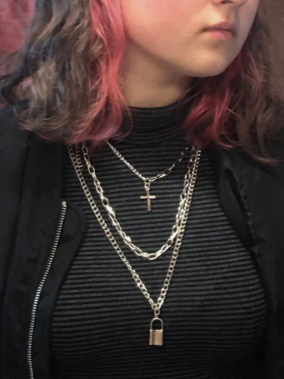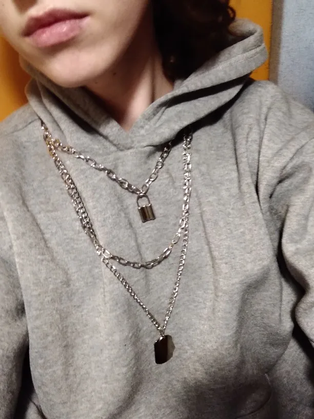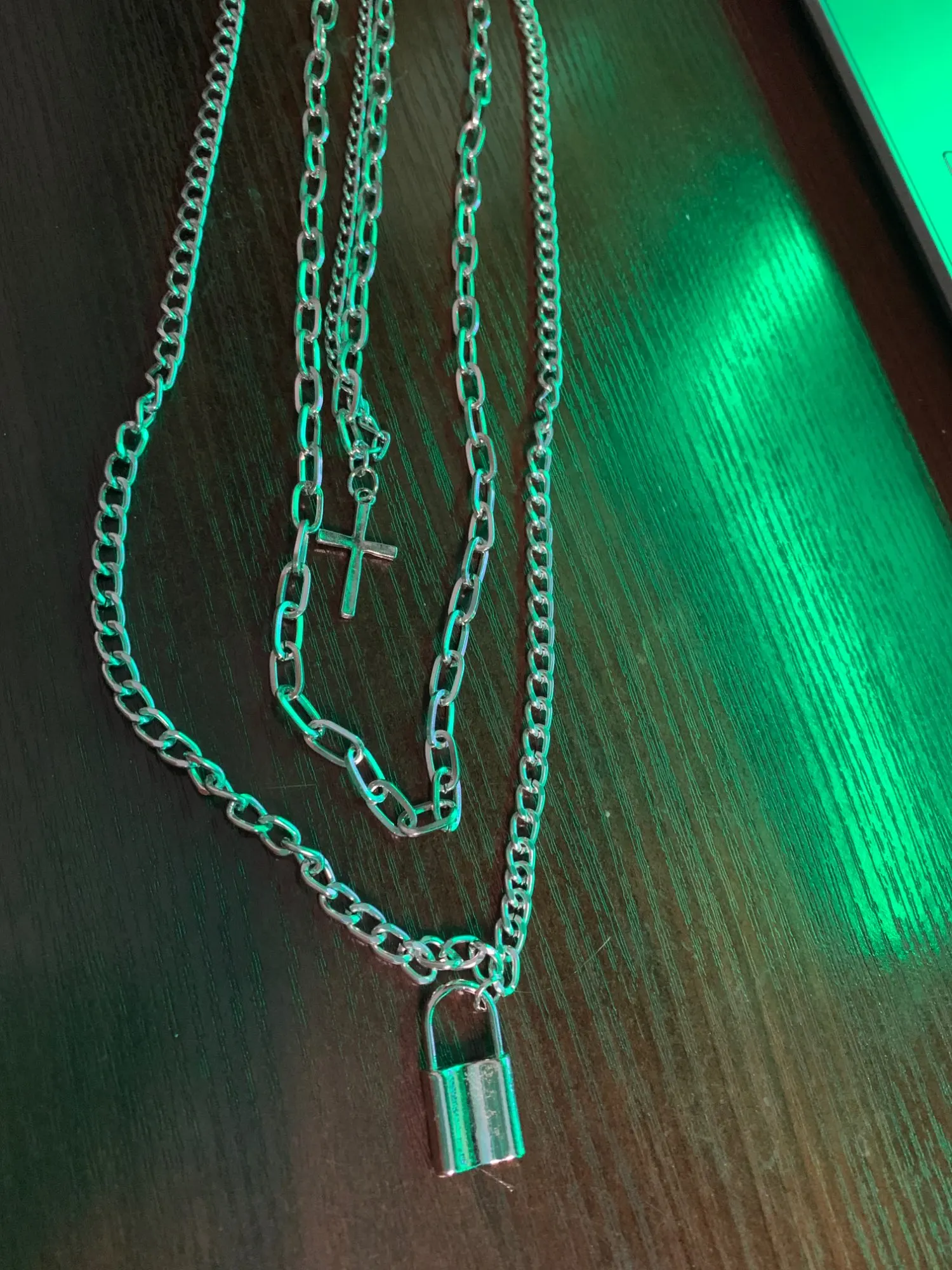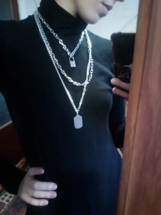 В самой упаковке цепочки отдельные, то есть можно их носить как по отдельности так и вместе, не очень тяжёлые, 10/10, водолазка грязная блин...