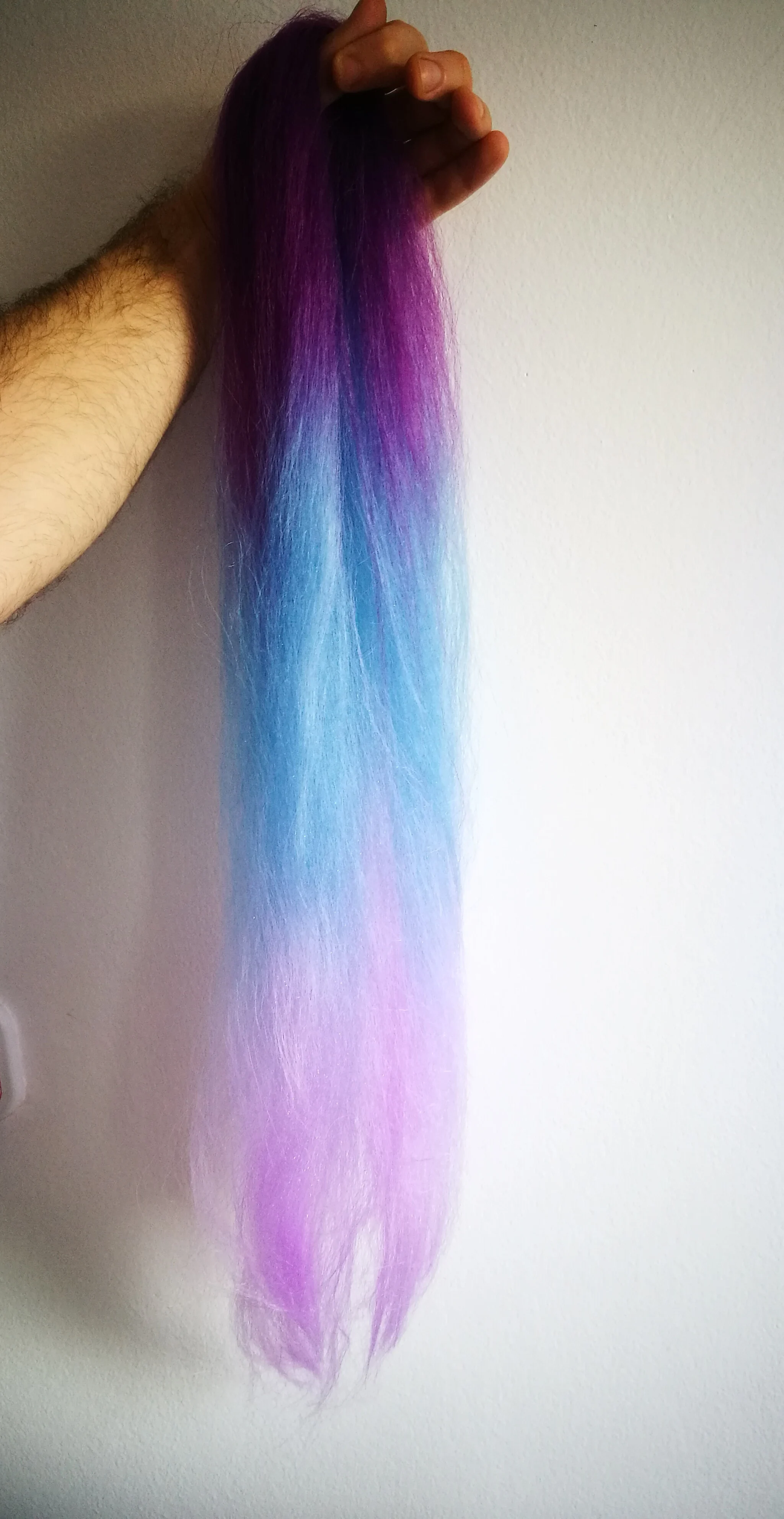 Получил быстро, все в порядке, соответствует цвету. Realllly не должен был разбирать его, хотя, это узлы, как с ума, но я думаю, что это так со всеми синтетическими волосами. Моя вина не в продавцах. Также количество волос действительно большое, и оно красивое и длинное. Выглядит пластично/кружится голова на кончиках. В целом доволен. Количество волос на рисунке составляет 1/7 от того, что вы получаете, это небольшая прядь (что мне удалось распутать)
