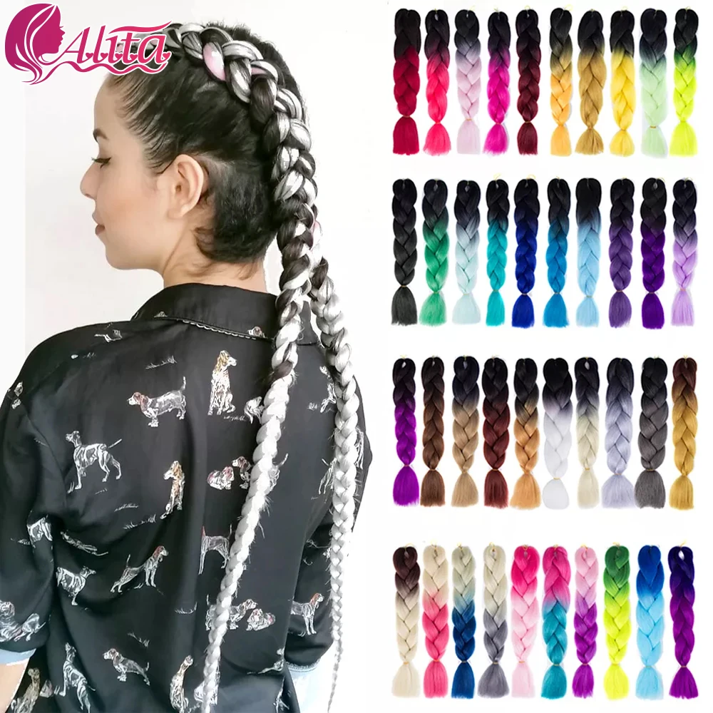 Синтетические косички для волос, косички для наращивания волос с эффектом омбре, розовые, фиолетовые, желтые, золотые цвета