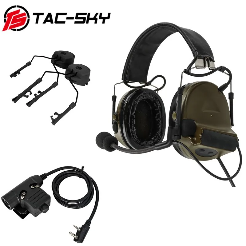 Силиконовые наушники COMTAC II, тактическая гарнитура + штепсельная вилка U94 PTT Kenwood + ARC-адаптер для шлема с креплением для наушников и креплением для шлема, FG, для шлема, с креплением на голову, для шлема