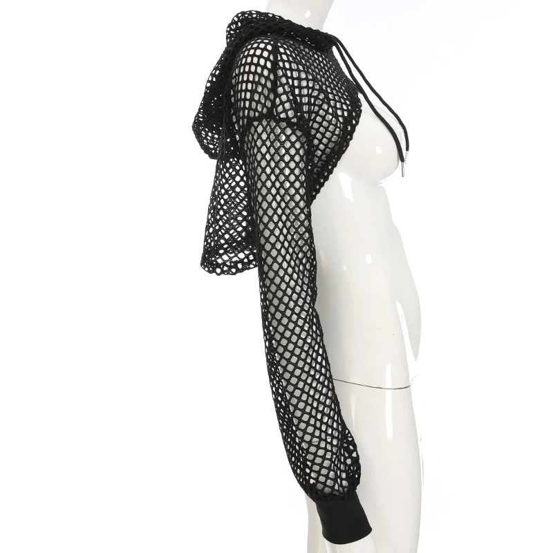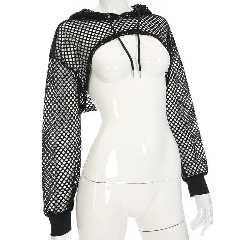 Женский сетчатый топ с капюшоном и длинным рукавом, Готическая футб...