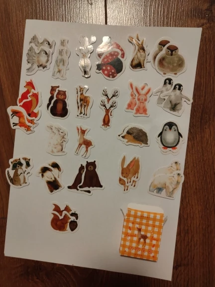 Хороший набор! плотная бумага и яркое четкое изображение. Особенно порадовало, что животные в разных стилях изображены: есть и "мультяшные" и "как настоящие"))) каждой наклейки по 2 шт.