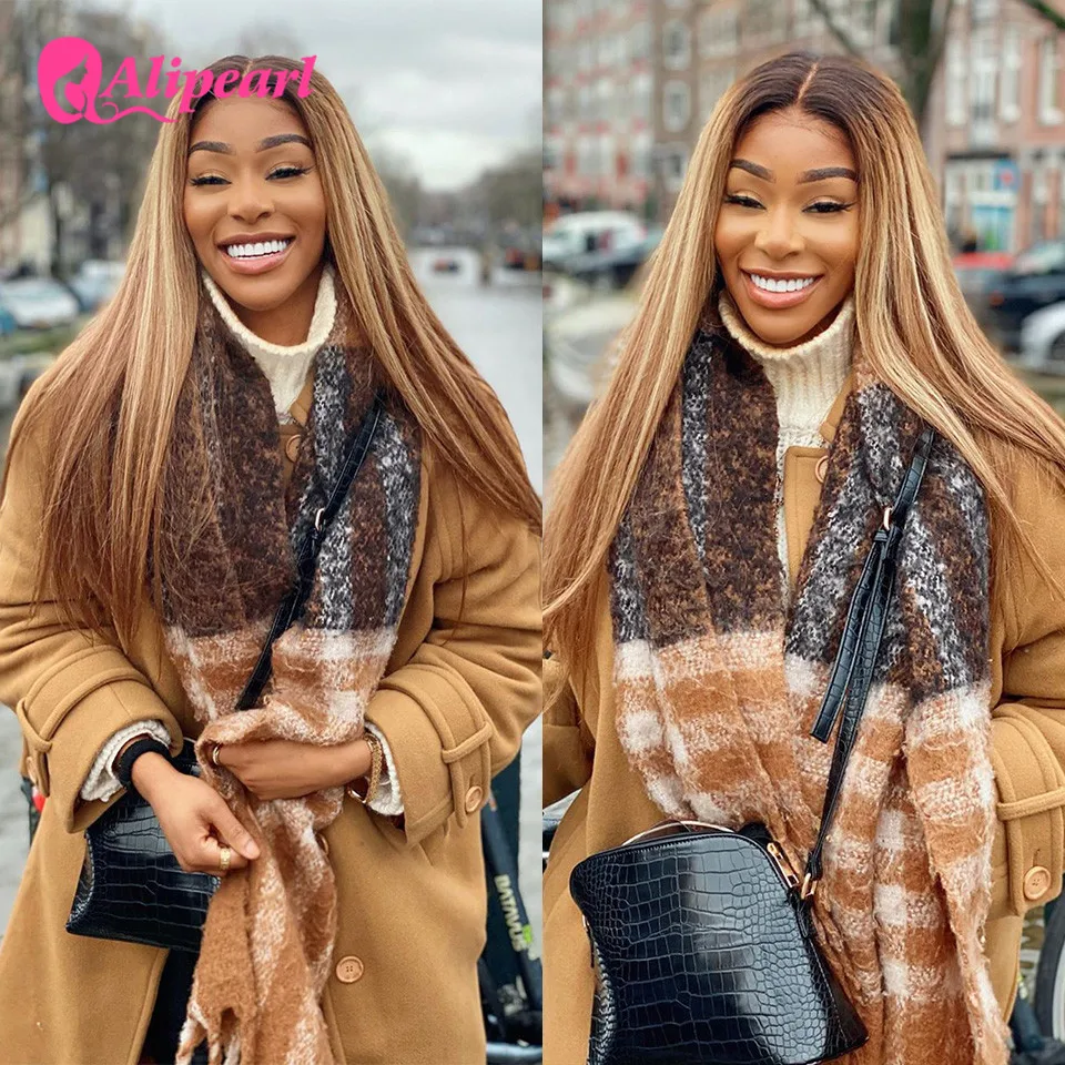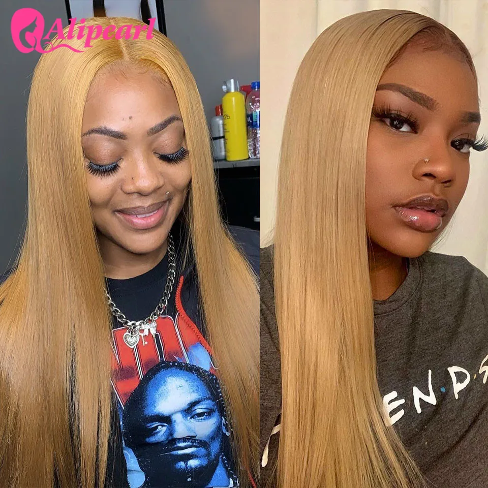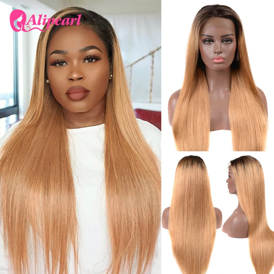 #27 цветные прямые фронтальные человеческие волосы парики для чернокожих женщин 1B27 перуанские парики предварительно отобранные 150% 180% плотность aliborl волосы