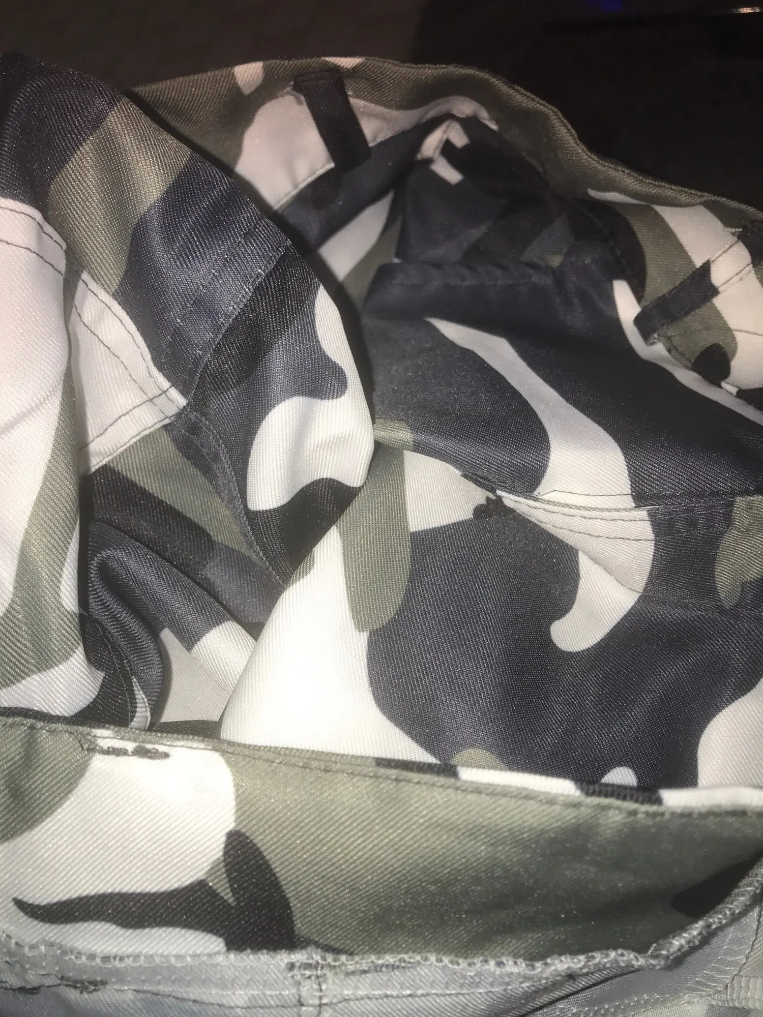 Прибыло в течение 44 дней. Достойный материал. Ожидала более серого цвета вместо зеленых пятен, но okey. Есть нить, торчащая поверх штанов, но это не трудно зафиксировать. Другой дефект-отверстие для пуговиц над молнией-полупрошитое отверстие закрыто, шляпа открывается, чтобы соответствовать пуговице. Продукт соответствует его цене. Брали размер XL, я 180 см, 65 кг, отлично сидит, не слишком маленький, не слишком большой.