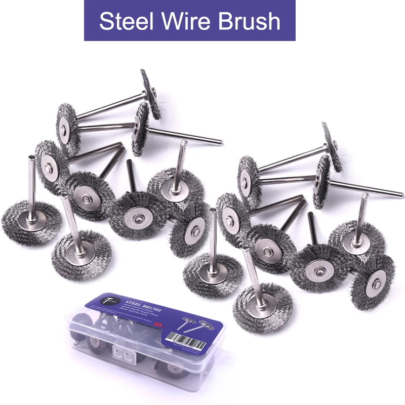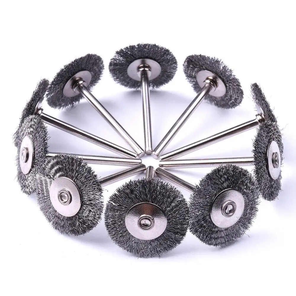 20 штук 25x3 мм металлическая ручка Сталь щетки колеса провода для мини-дрели роторные инструменты удаления ржавчины металла Dremel полировальная щетка