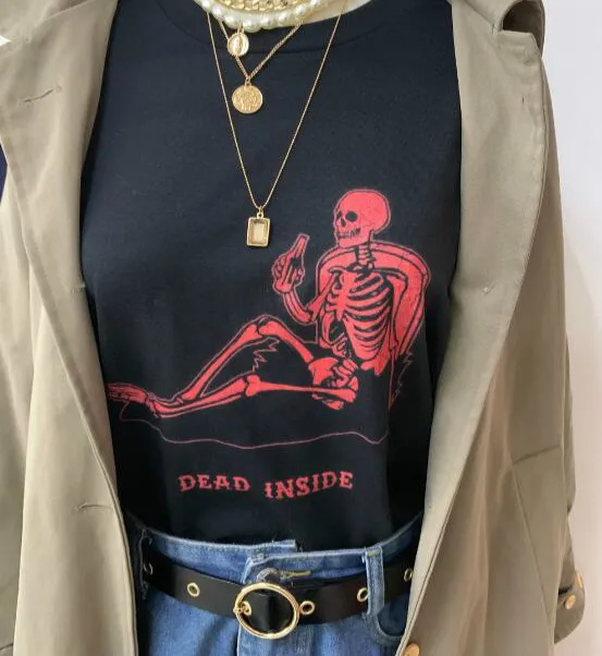 Sunfiz HJN Скелет питьевой вино надпись мертвый внутри темный готический стиль футболка хлопковая Повседневная смешная гранж унисекс женская футболка