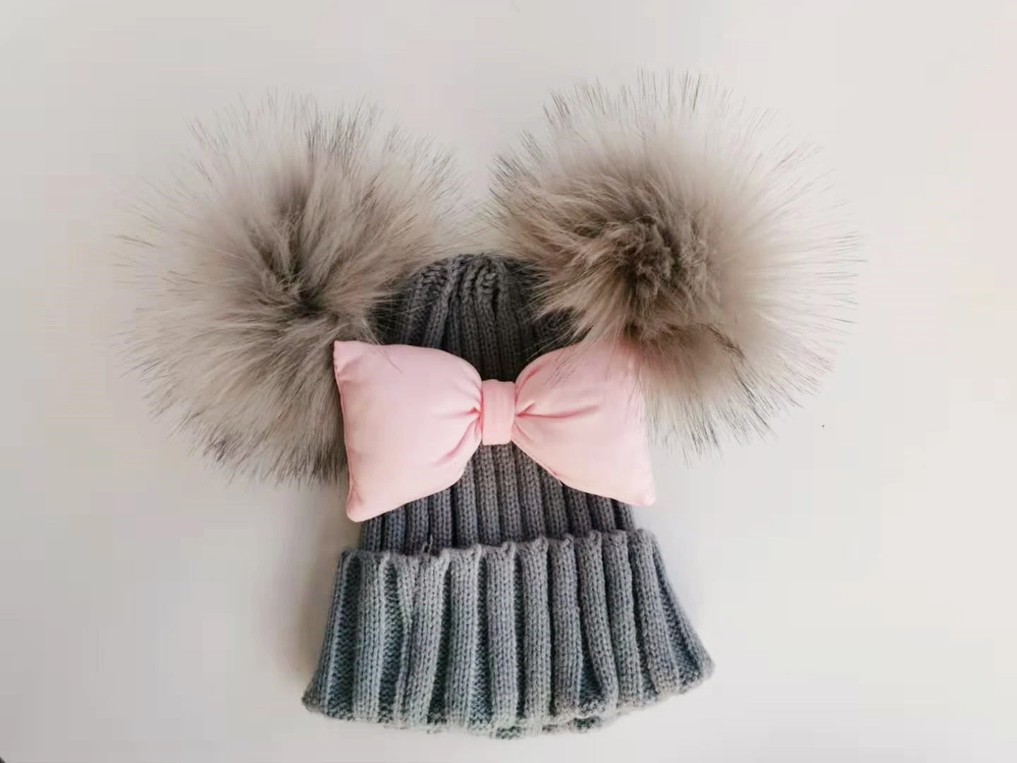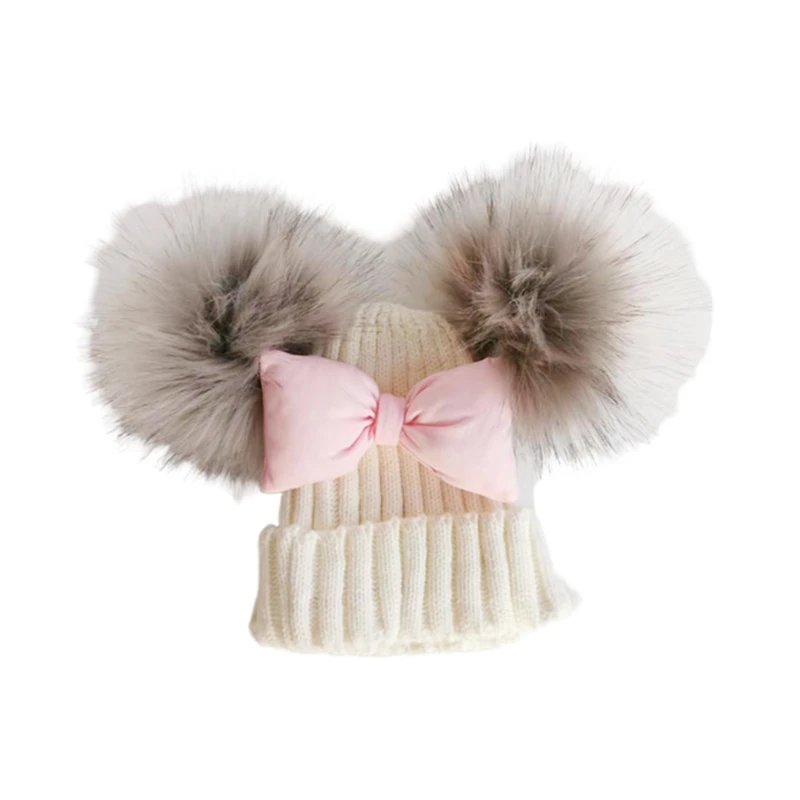 Шапка-бабочка для новорожденных, с 2 помпонами и ушками, для мальчиков и девочек