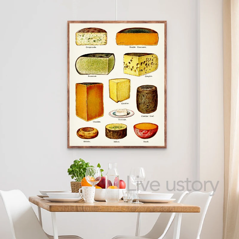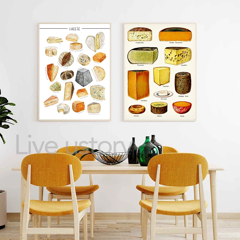 Настенный декор для кухни с изображением сыра, постеры с изображением сыра, винтажная настенная живопись на холсте, картина для декора столовой