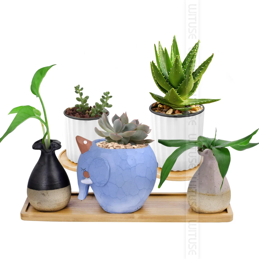 Бамбуковые круглые квадратные чаши тарелки настольные Горшки Бонсай бамбуковая подставка поддоны для горшков база Цветочные Кашпо Украшения рукоделие WITUSE