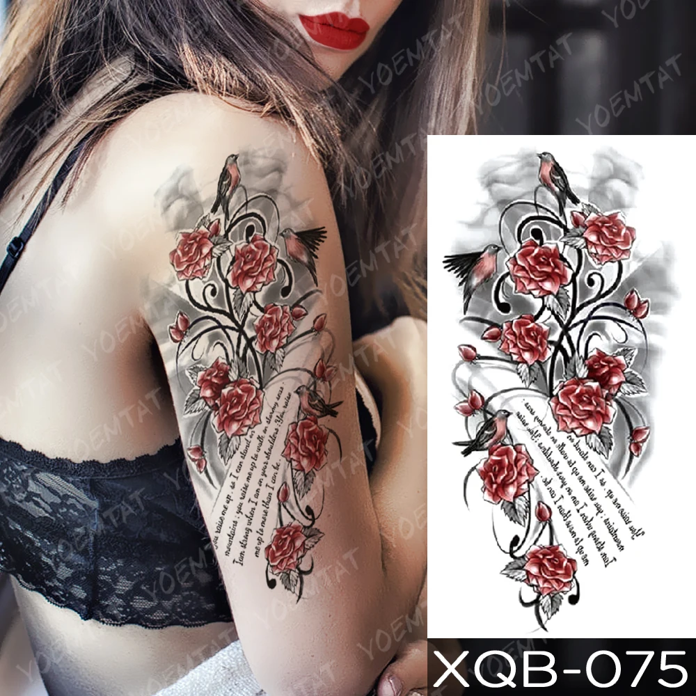 Водостойкая временная татуировка-наклейка с компасом, розой, лозой, драконом, флэш-татуировка, птица, поэма, боди-арт, искусственная татуировка на руку для женщин и мужчин