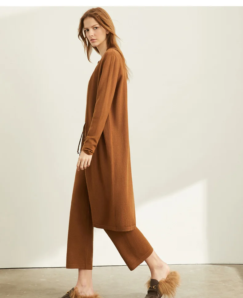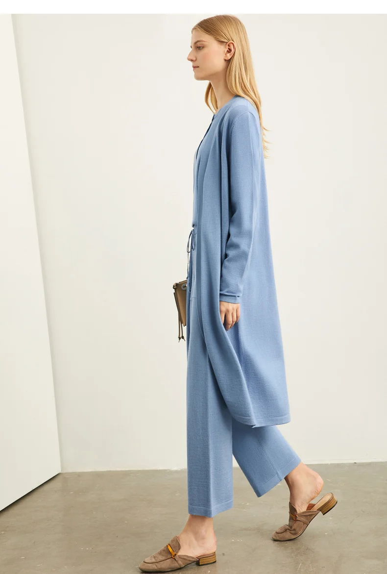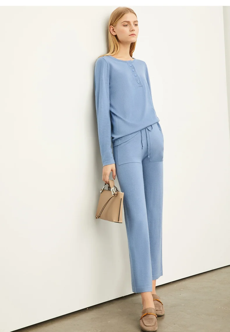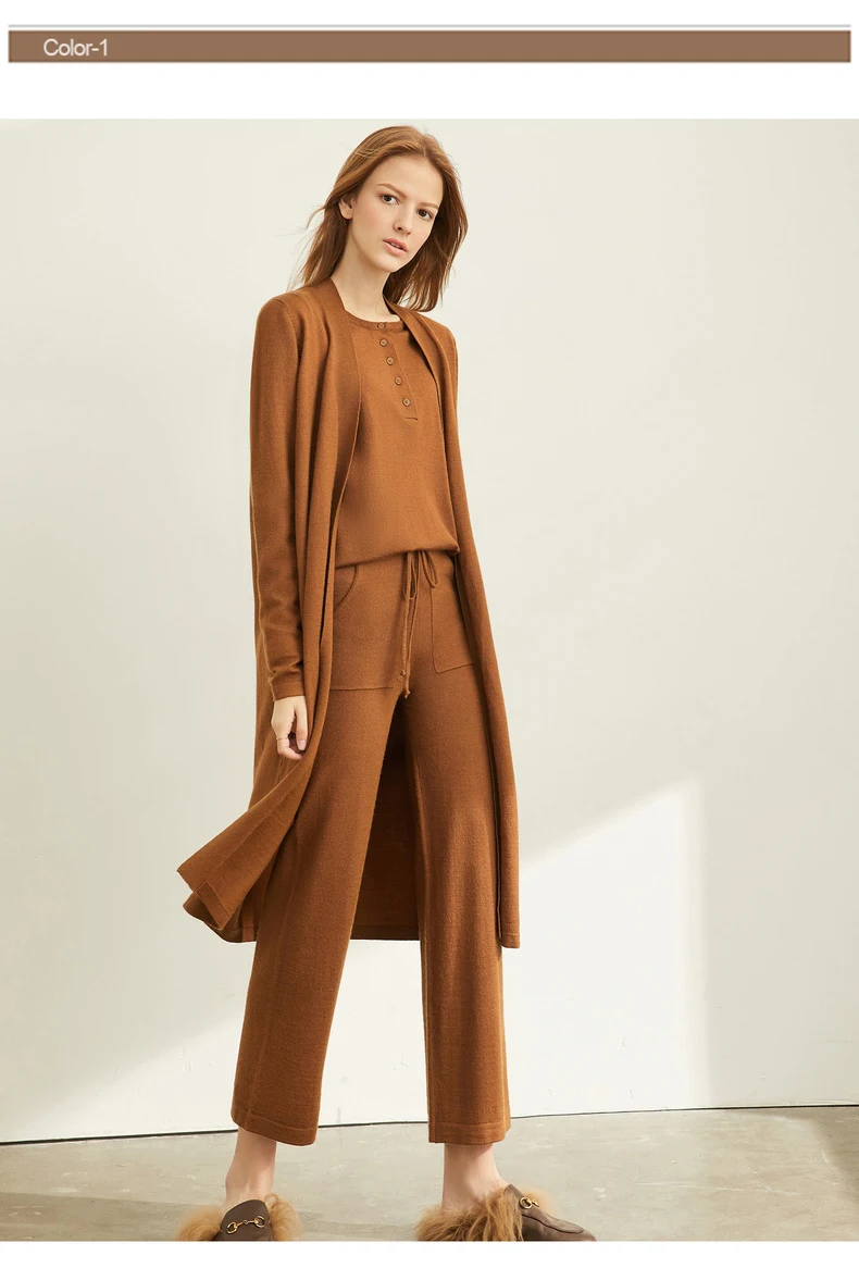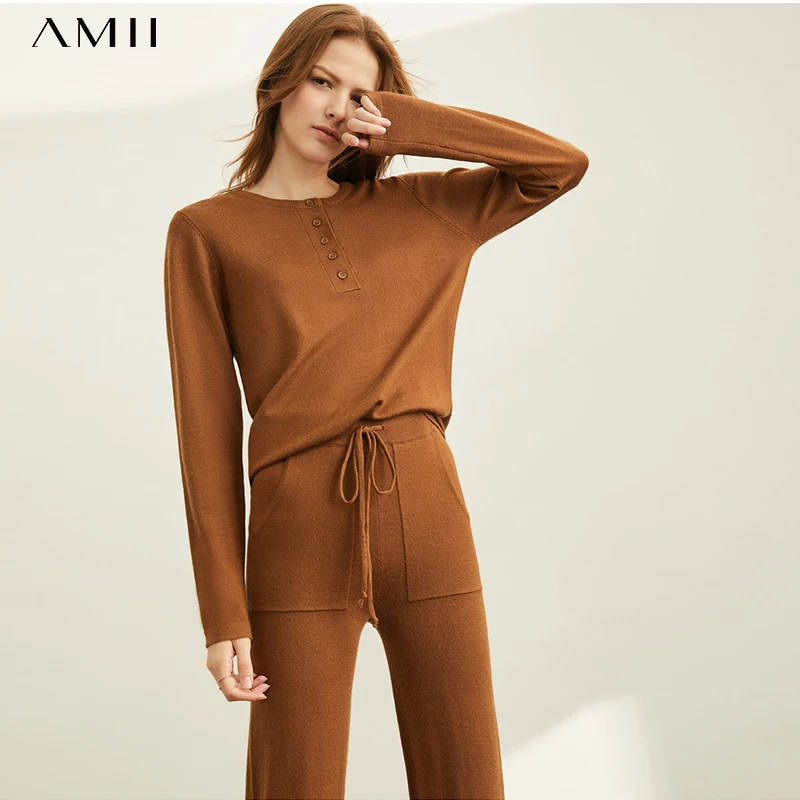 Осенне-зимний элегантный свитер Amii для женщин, женский Повседневный однотонный вязаный свитер, Свободное пальто и брюки с эластичной талией, 11920160
