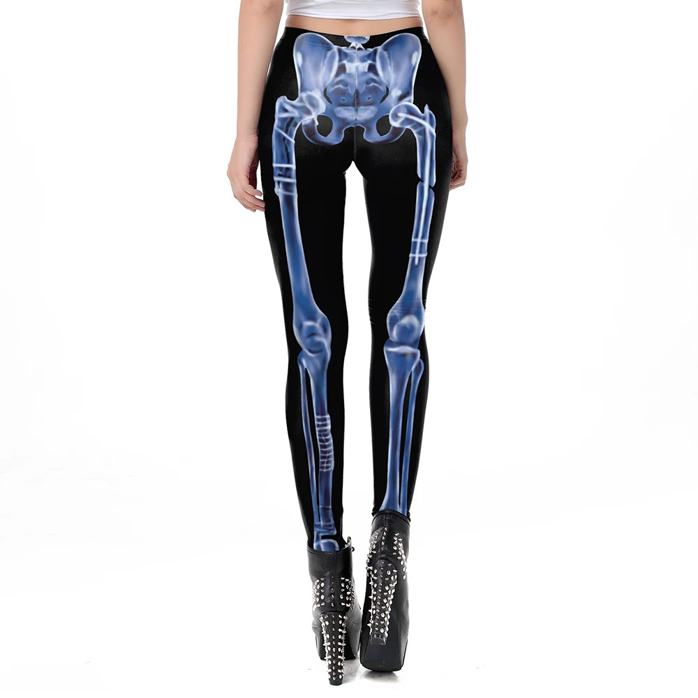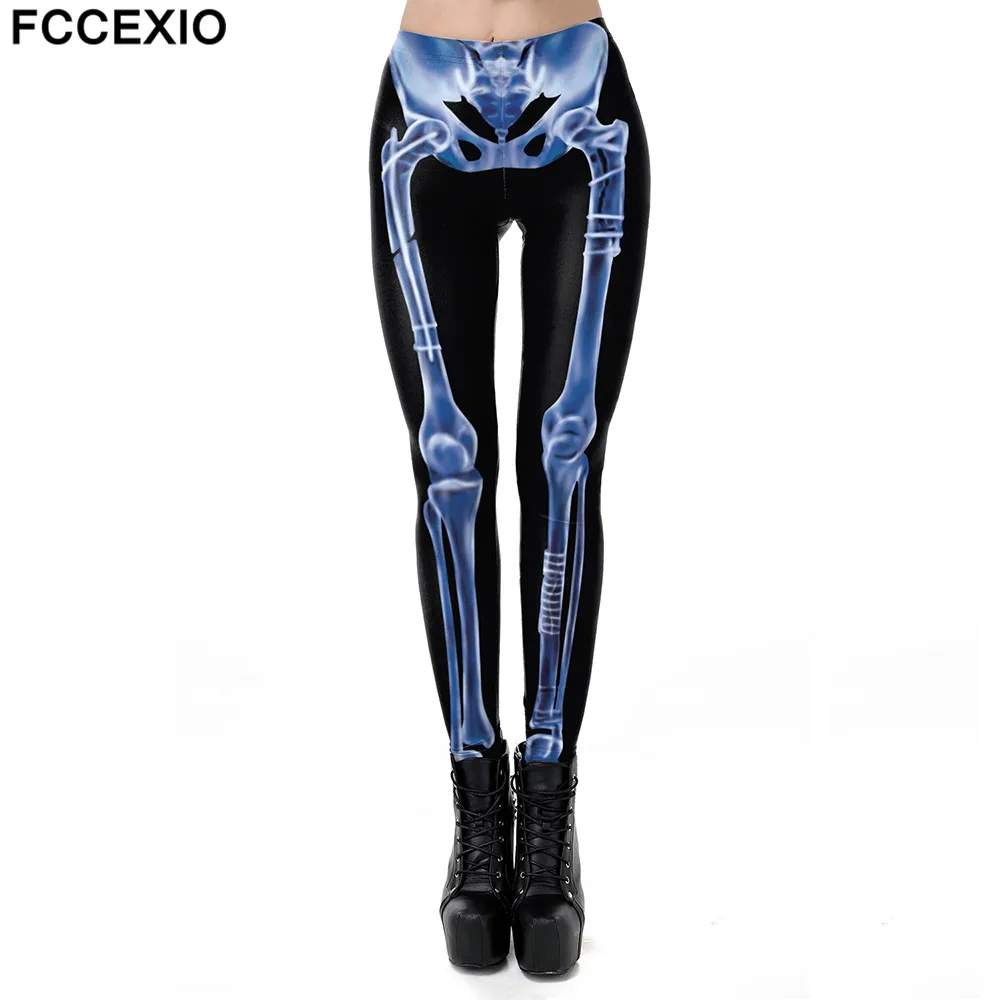 FCCEXIO Новый дизайн 3D печатные блестящие синие Кости Скелет Сексуальные женщины повседневные панк рок Леггинсы с высокой талией брюки фитнес Леггинсы