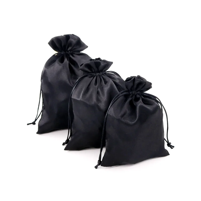 Модные гладкие шелковые атласные пакеты 10 шт.лот 8x10 9x12 см Черный тканевый Подарочный пакет на шнурке подвеска ожерелье ювелирные изделия Упаковочные сумки