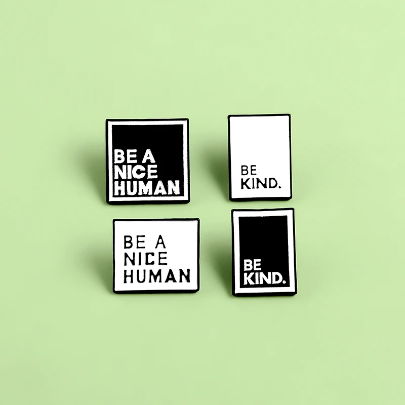 BE KIND BE A NICE HUMAN эмаль черно - белая маркировка брошь воротник рюкзак брошь рубашка пуговица эмблема подруга ювелирное изделие брошка