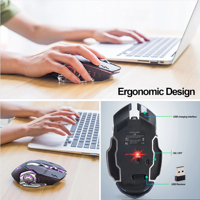 Беспроводная игровая мышь X8, перезаряжаемая Бесшумная USB мышь со ...