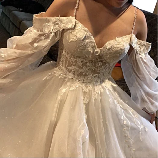 Я так влюблен в это платье! Продавец работает со мной над несколькими настройками, чтобы создать идеальное платье. Я беспокоился о том, что заказал платье онлайн, но я отправил продавцу свои измерения и платье подошло как перчатка