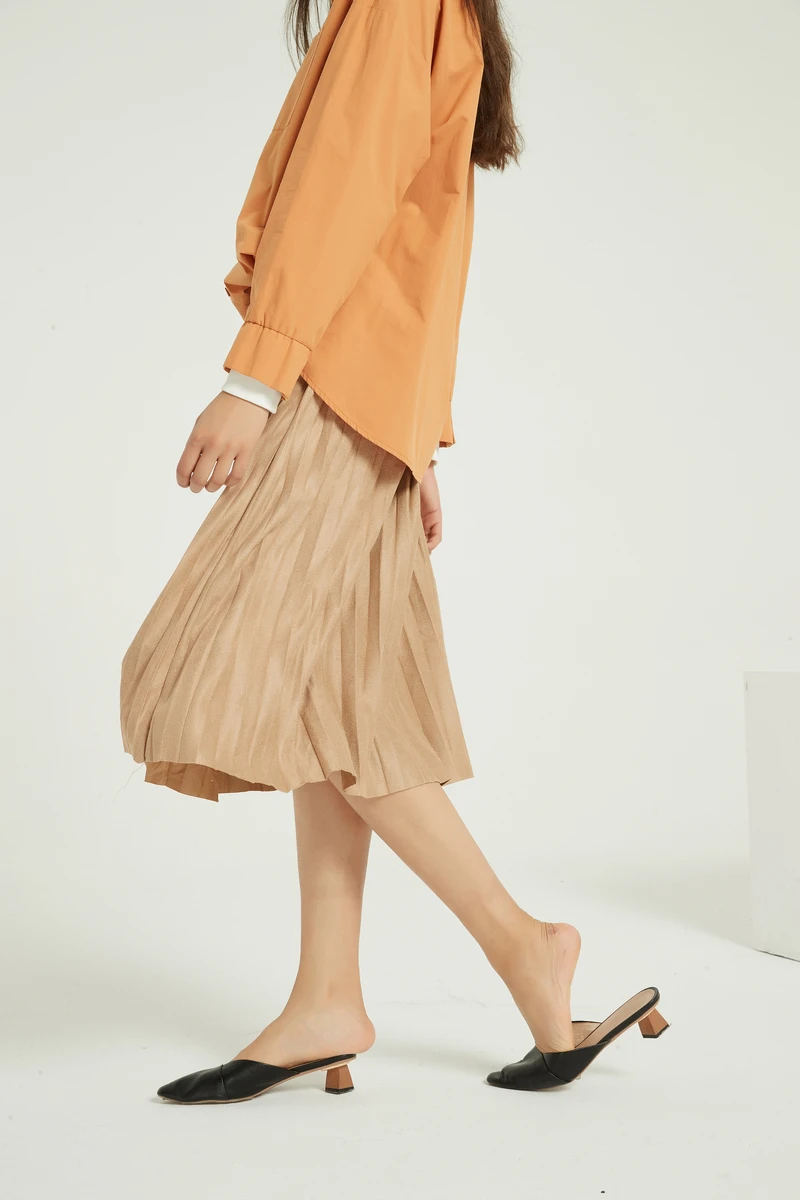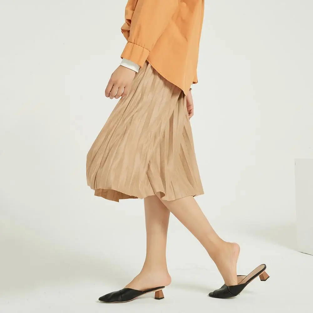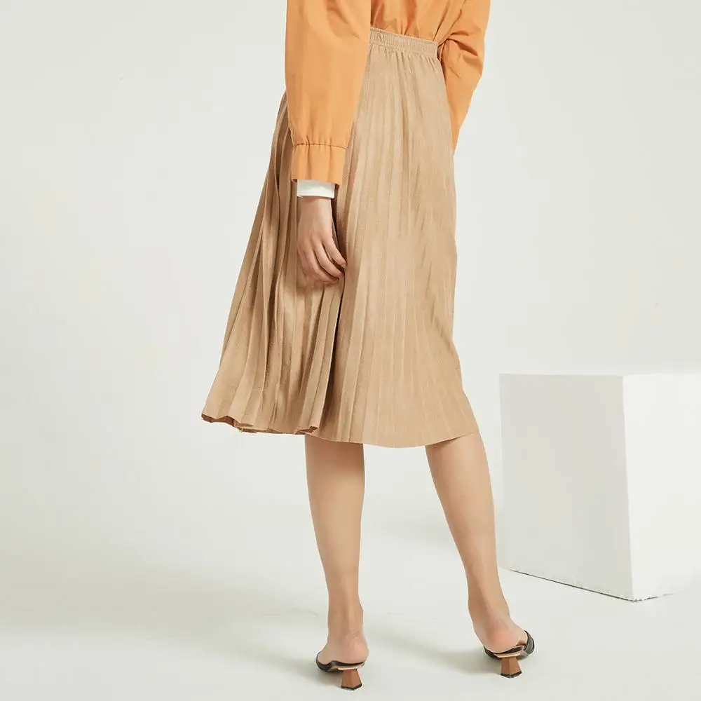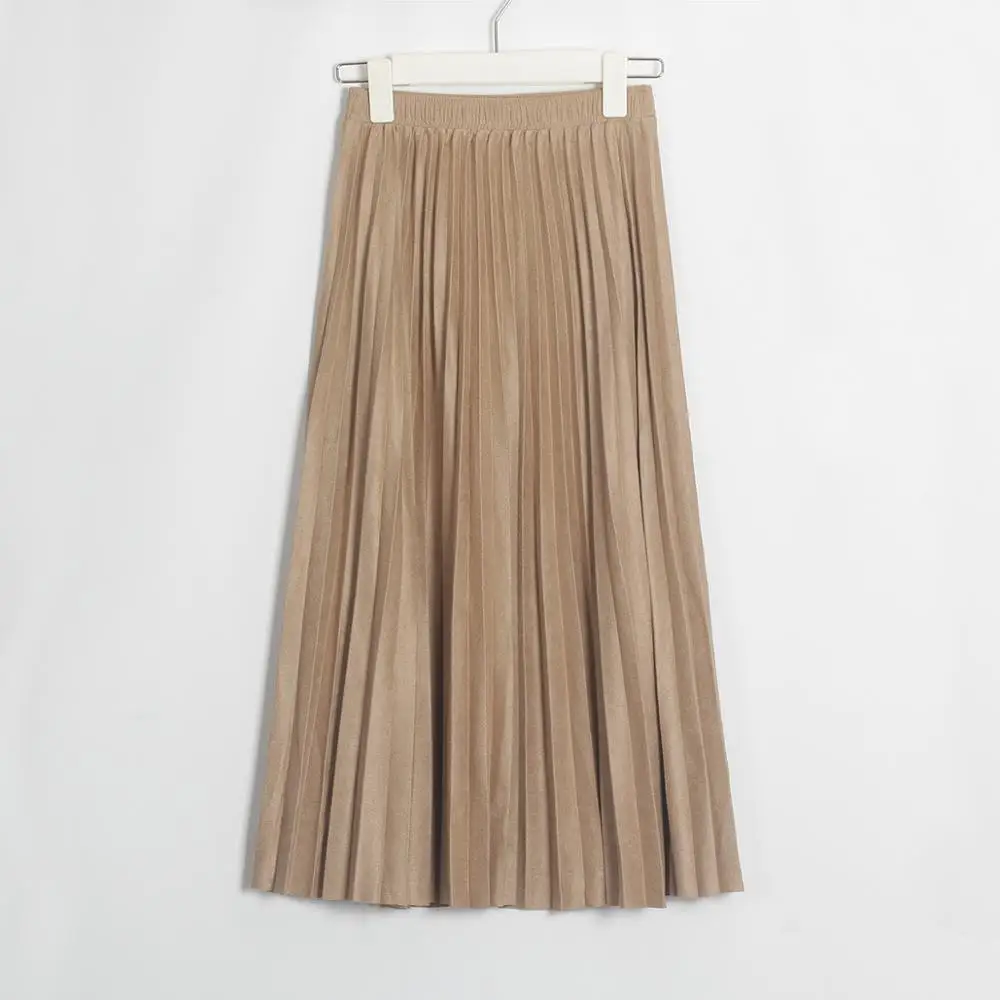 Женская замшевая юбка Wixra, длинная Плиссированная винтажная юбка средней длины, уличная Женская юбка на осень и зиму