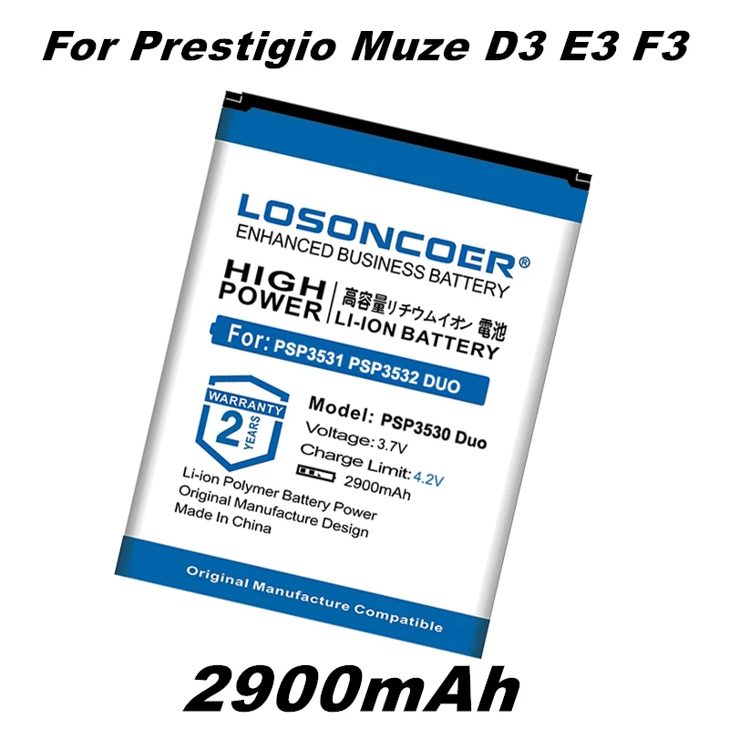 LOSONCOER 2900 мАч, PSP3530 Батарея для мобильного телефона Prestigio Muze D3 E3 F3 PSP3530 DUO PSP3530DUO PSP3531 PSP3532 DUOMuze A7 PSP7530 DUO