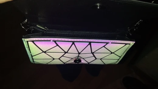 Сумка огонь жена довольна на свету переливается разными цветами.