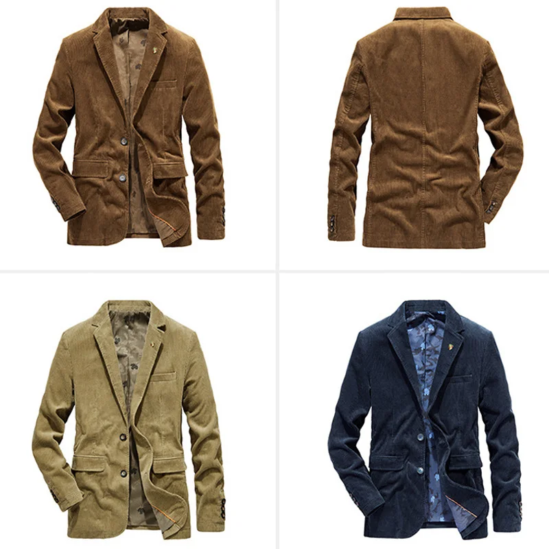 Повседневный Модный осенне-зимний мужской блейзер, куртка, хлопковый вельветовый мужской костюм, верхняя одежда, деловые пальто, одежда для мужчин MY155
