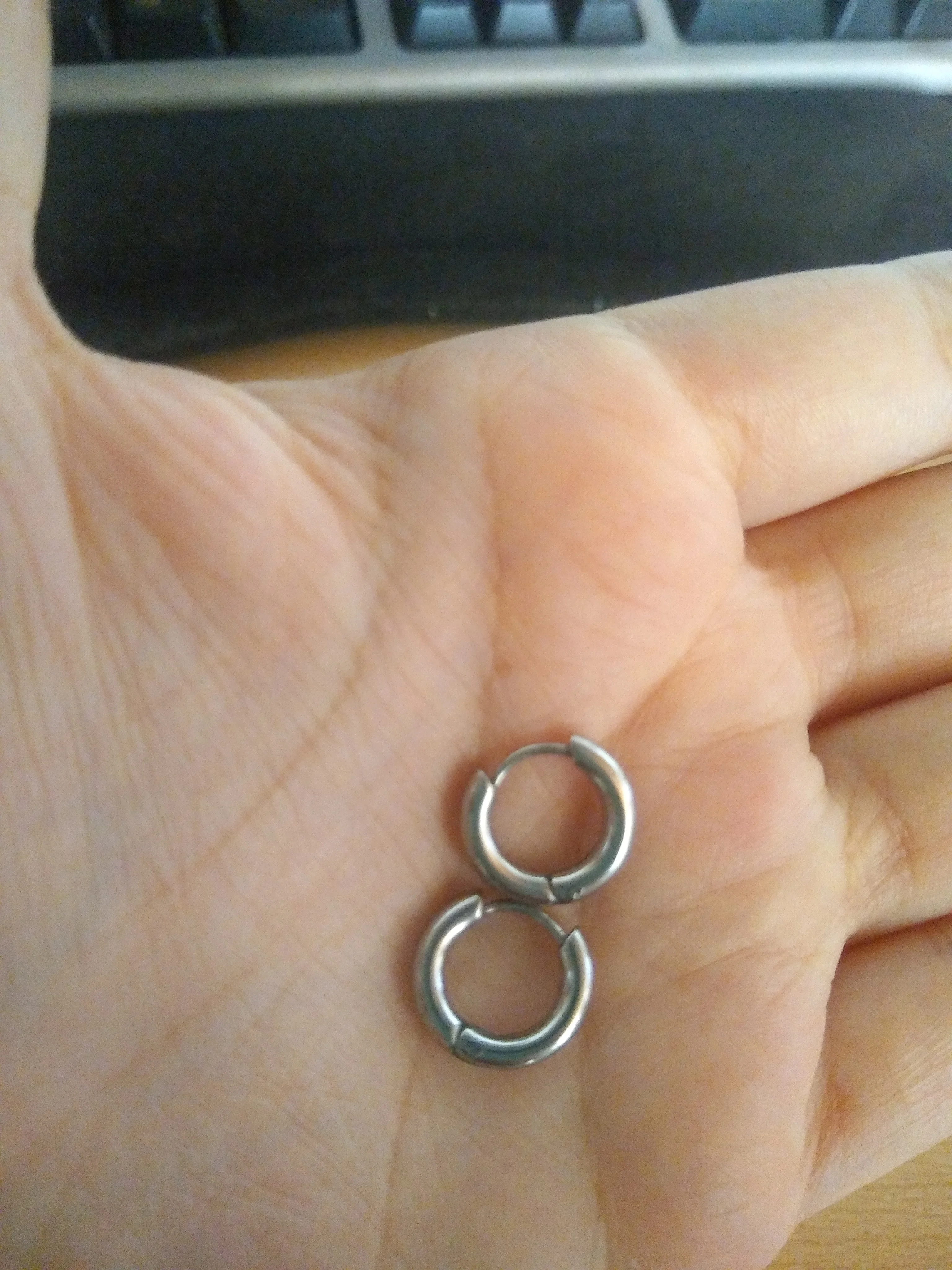 Думала придёт три штуки по 8мм, а пришло три пары, лол. Так даже лучше, у меня как раз шесть проколов(правда верхние заживают ещё, не рискнула на них надевать). Товар отправили на следующий день. Пришло в срок. Застёжка мега крепкая, не знаю, что такого нужно делать, чтобы потерять их, если и открыть сложно. Хотя это скорее минус. Висят свободно. Не тяжёлые, но ощутимые. Крючок¿ чуточку тоньше, чем у гвоздиков. С продавцом не общалась. Может ещё закажу, но по-больше диаметром
