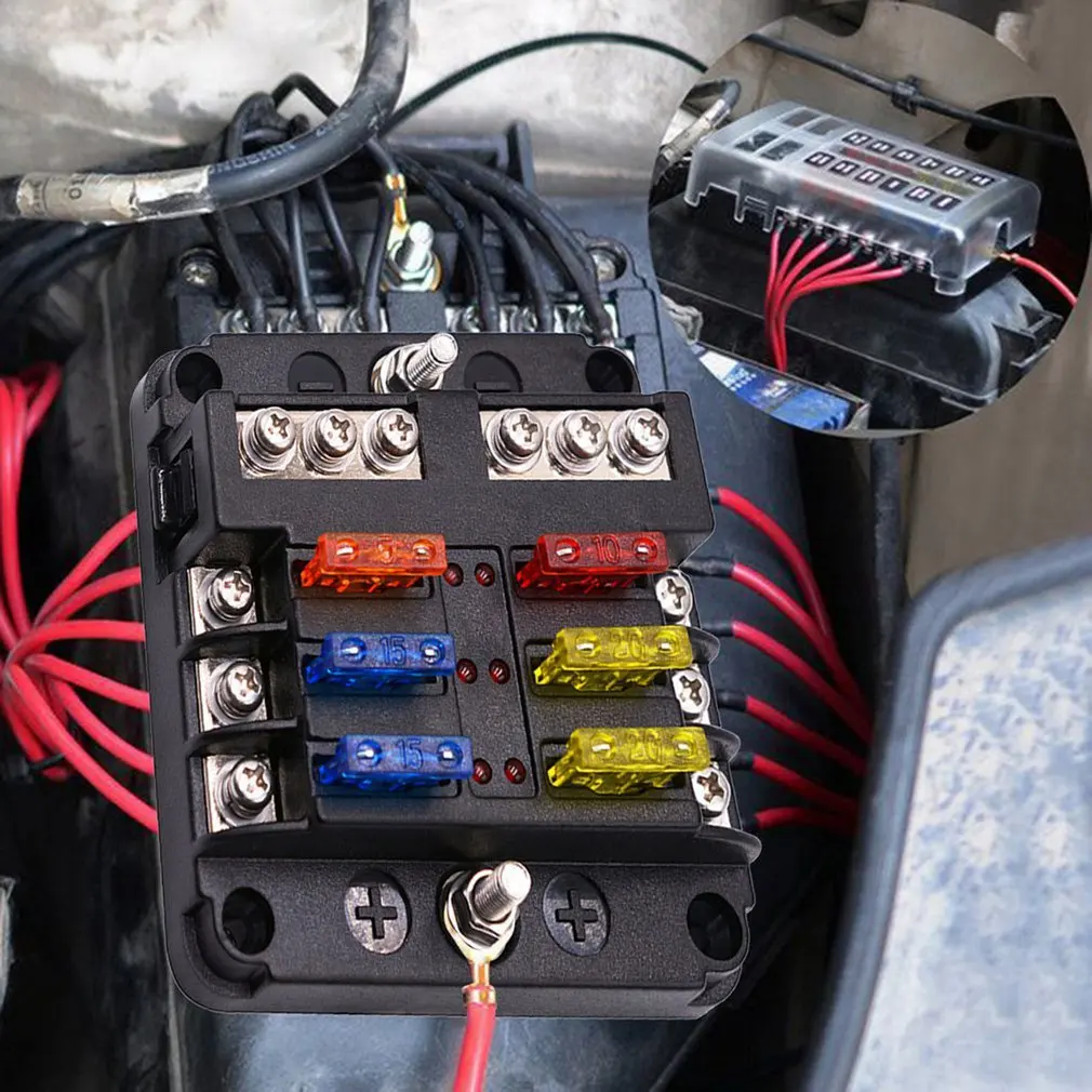 Пластиковая крышка 6-контактный 12-контактный блок плавких предохранителей 12 в 32 в держатель блока предохранителей M5 шпилька со светодиодным индикатором для автомобиля морского транспорта