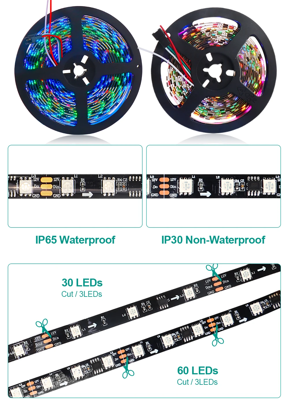 Удобство: 3 светодиодный s/резка (внешний 2811 ic, 1 ic контроль 3 светодиодный)