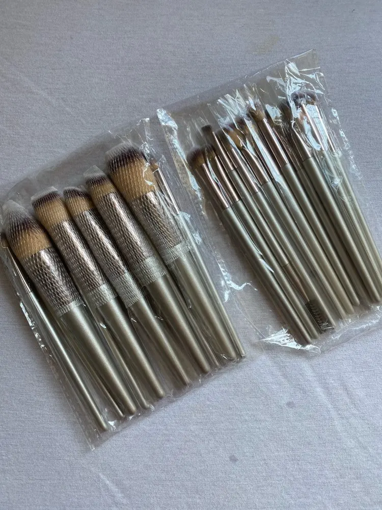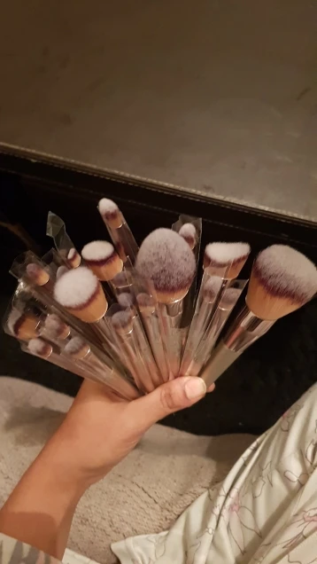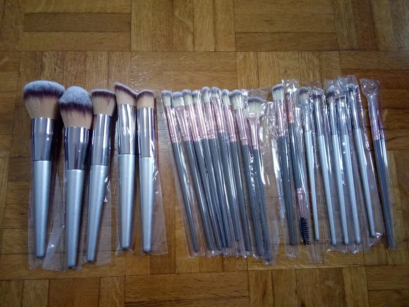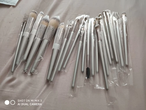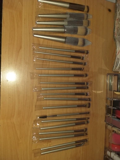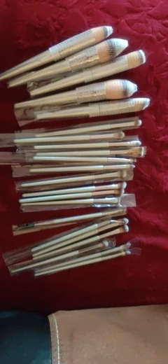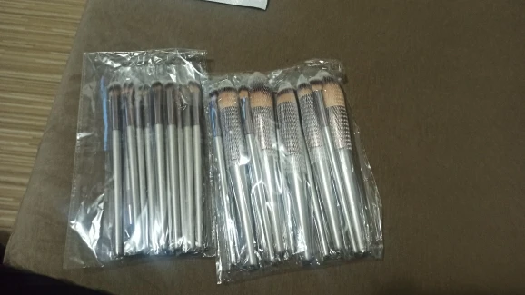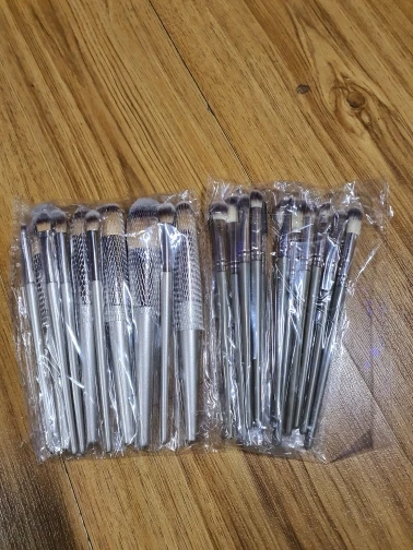 Супер быстрая доставка с отличным отслеживанием. Бием вино упаковано, каждый в небольшой пакет, а затем в большой. Количество, указанное в описании. Большое разнообразие кистей для полного макияжа. Я думал, что Веерная щетка больше, поэтому Ставлю 4 звезды. Остались довольны. Я рекомендую продавцу. Мне нравится сетка, которая поставляется с каждой большой кисточкой, так что она не портится