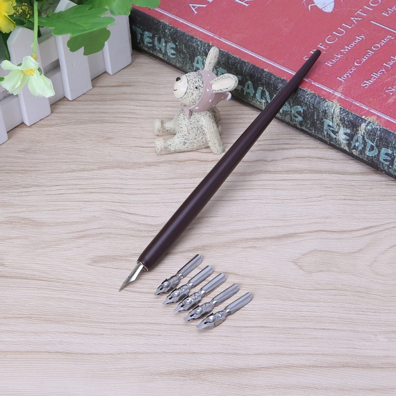 Деревянная английская каллиграфическая ручка с косой ручкой + 5 наконечников
